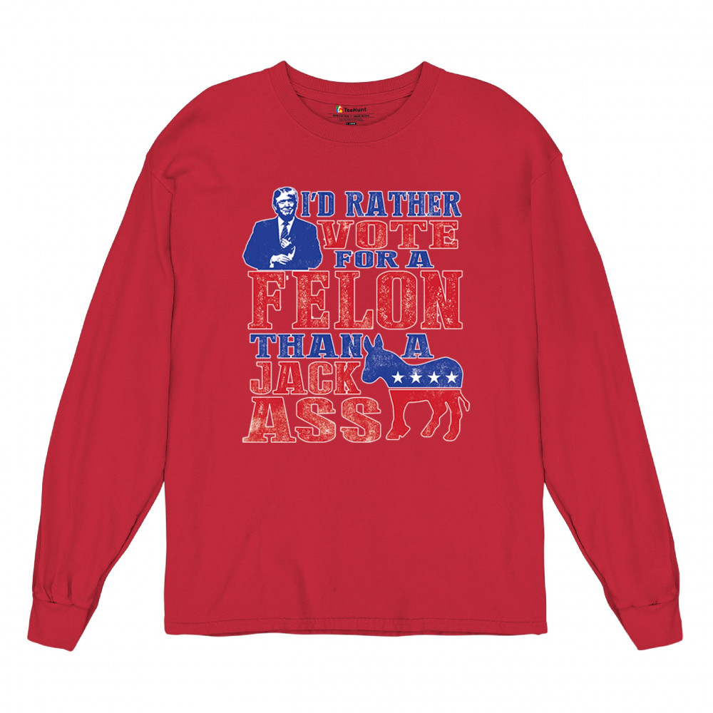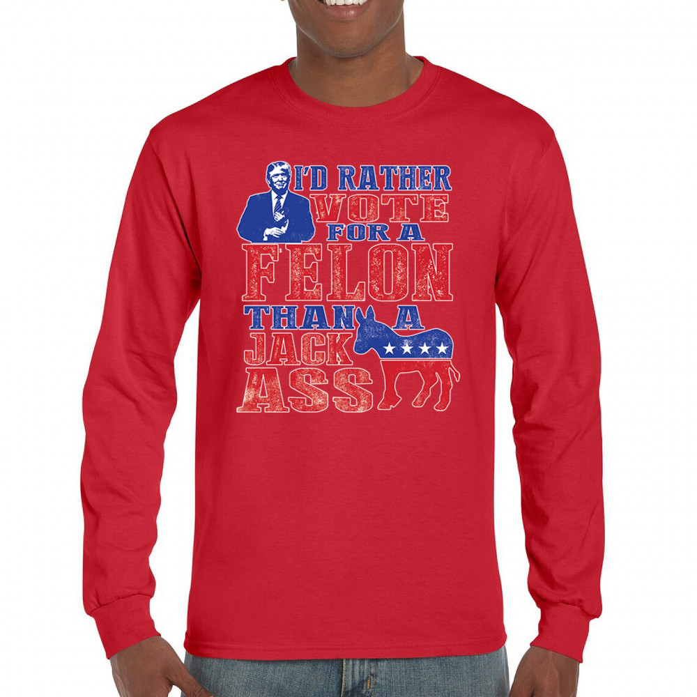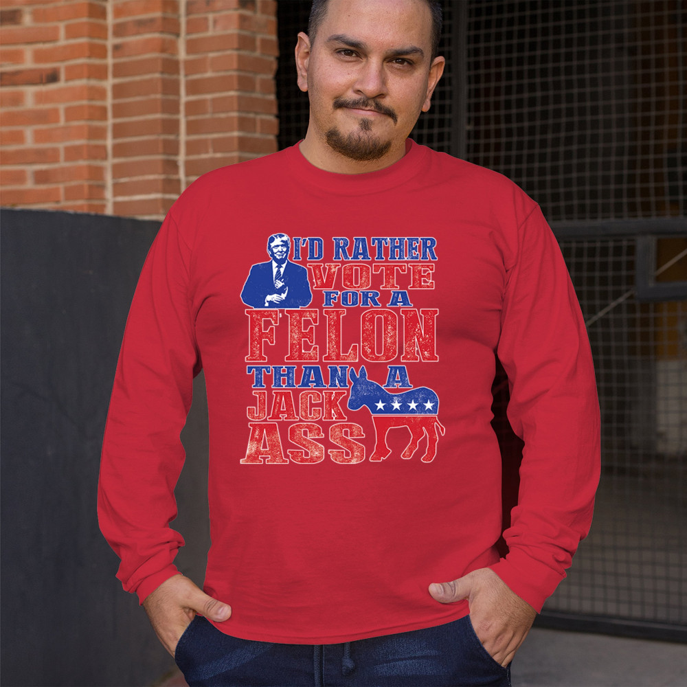 Boldly express your support with the "I'd Rather Vote For A Felon Than A Jackass" design. Perfect for rallies, it showcases loyalty to Trump and JD Vance.