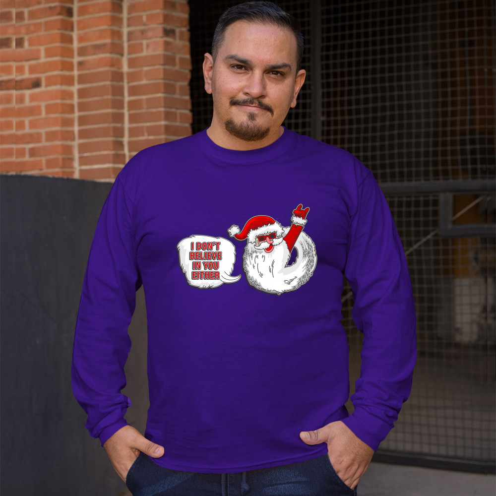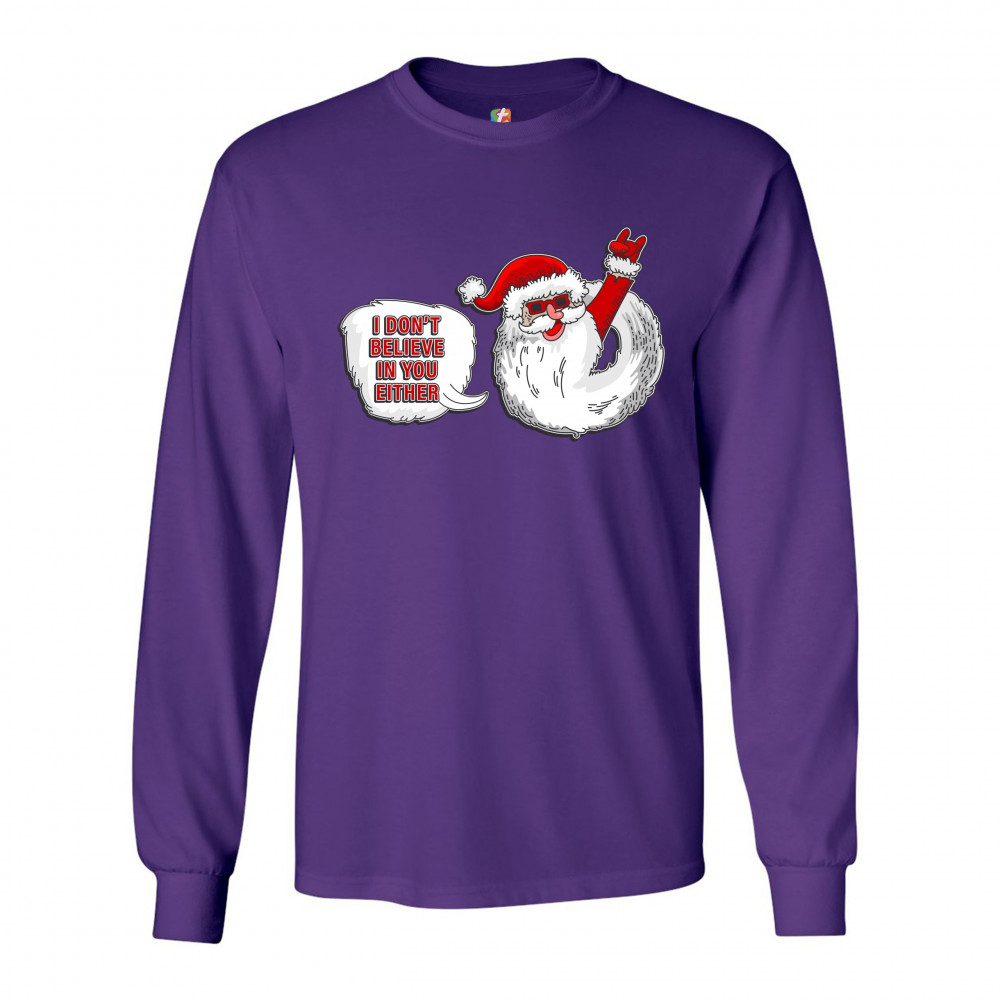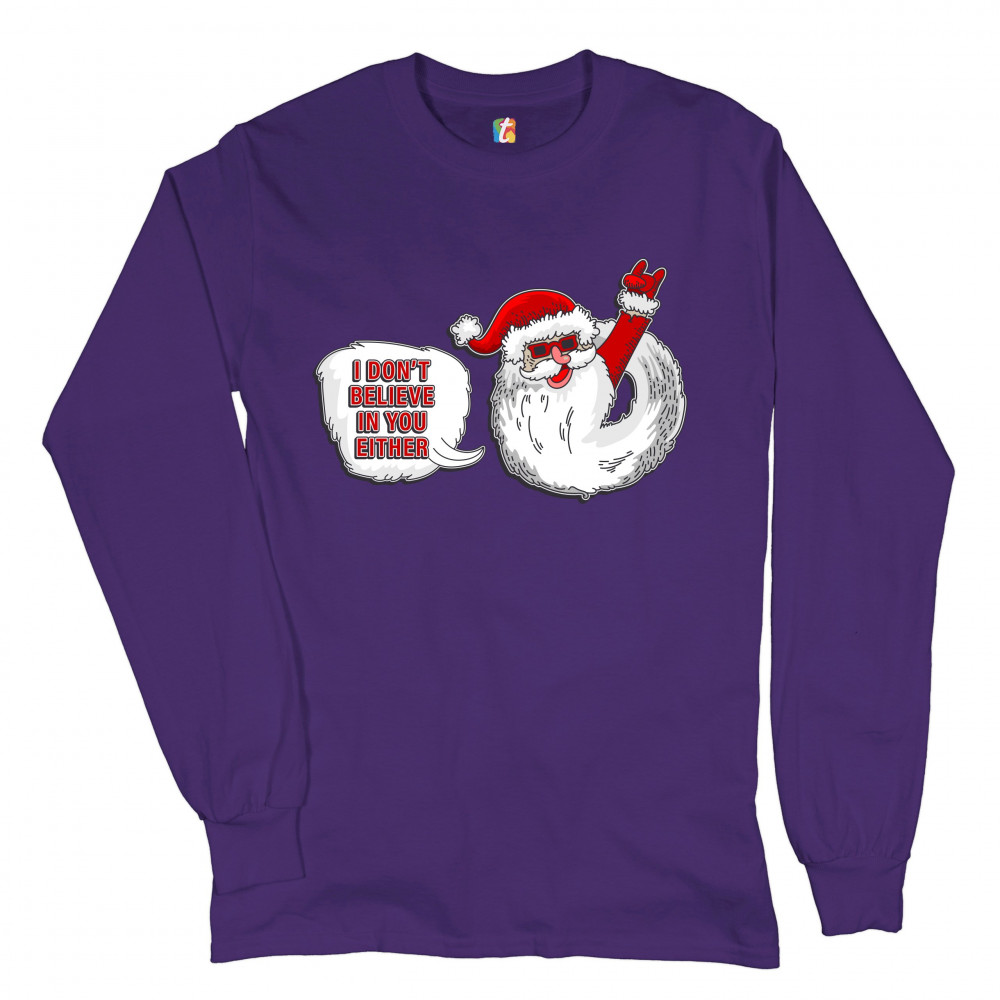 I DON'T BELIEVE IN YOU EITHER long sleeve t-shirt santa claus merry christmas purple