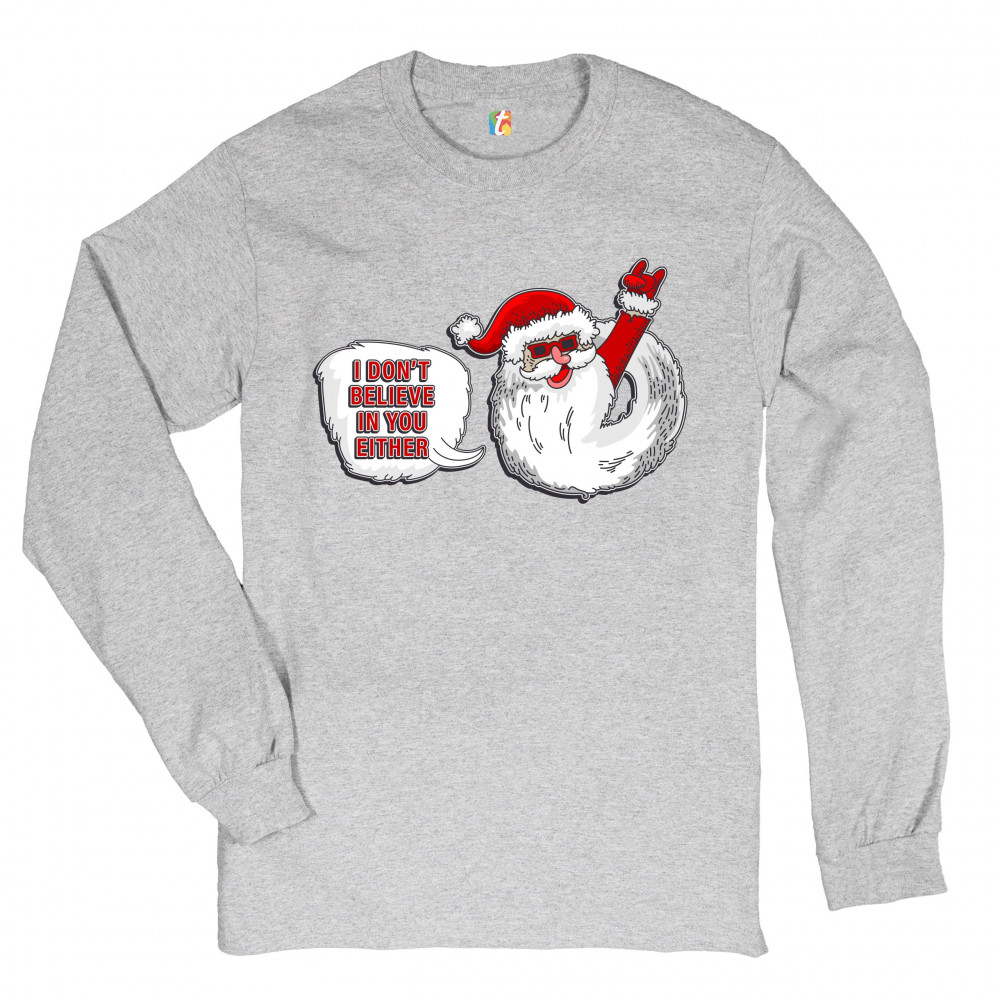 I DON'T BELIEVE IN YOU EITHER long sleeve t-shirt santa claus merry christmas gray