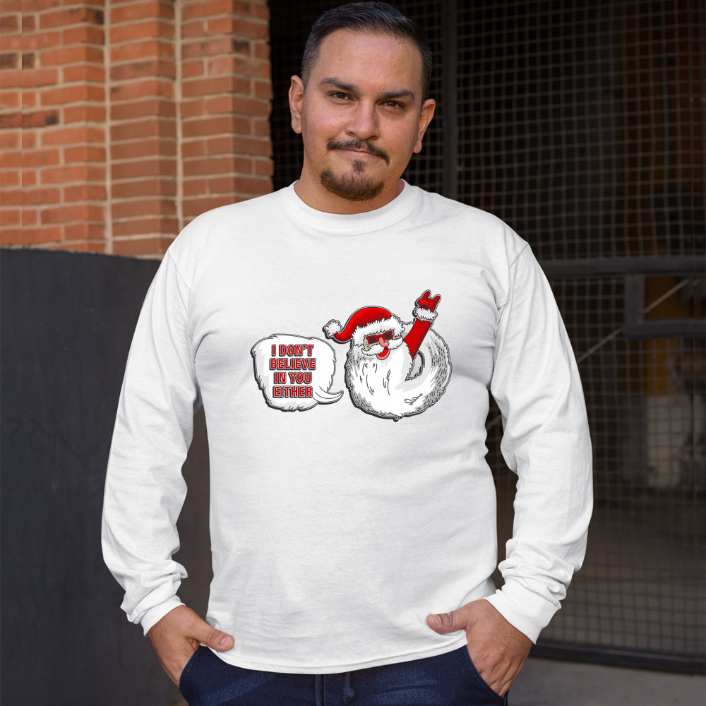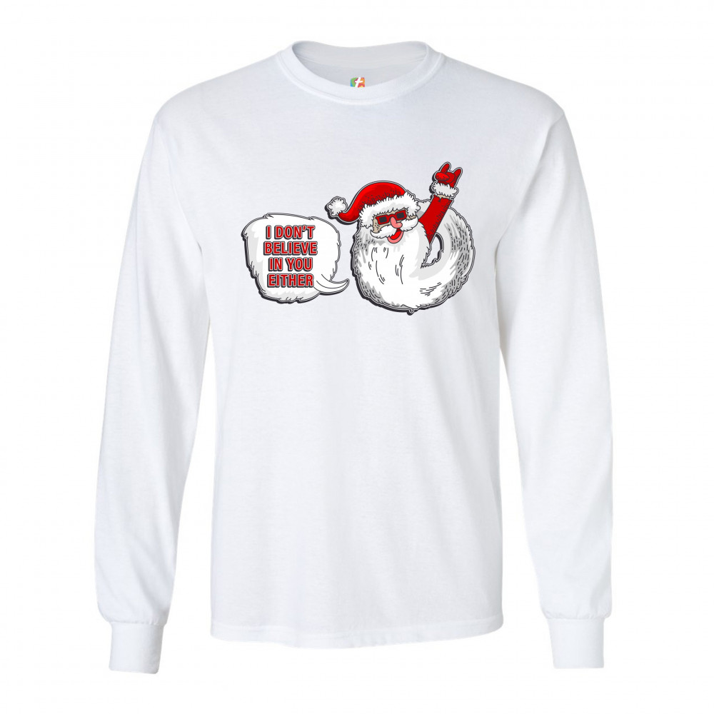 I DON'T BELIEVE IN YOU EITHER long sleeve t-shirt santa claus merry christmas white