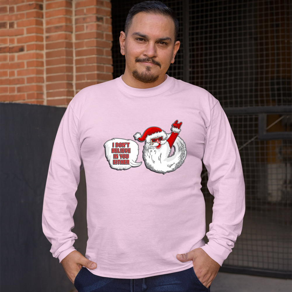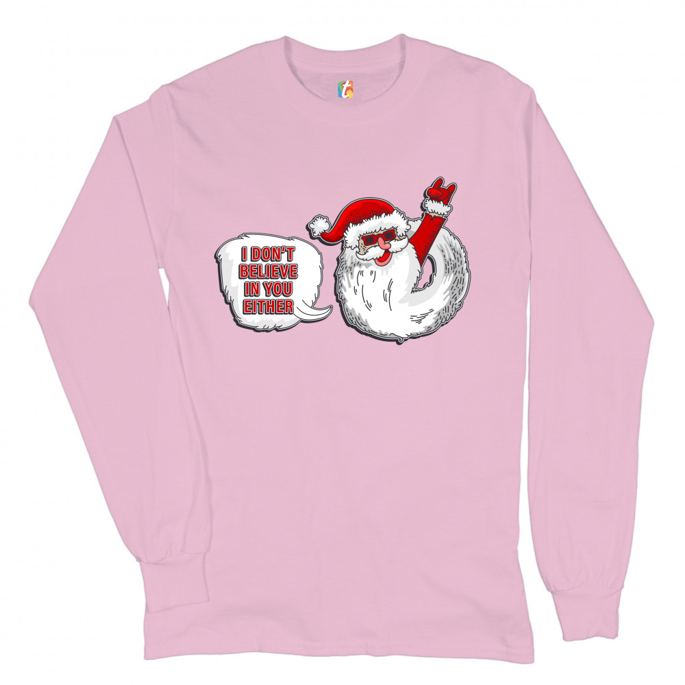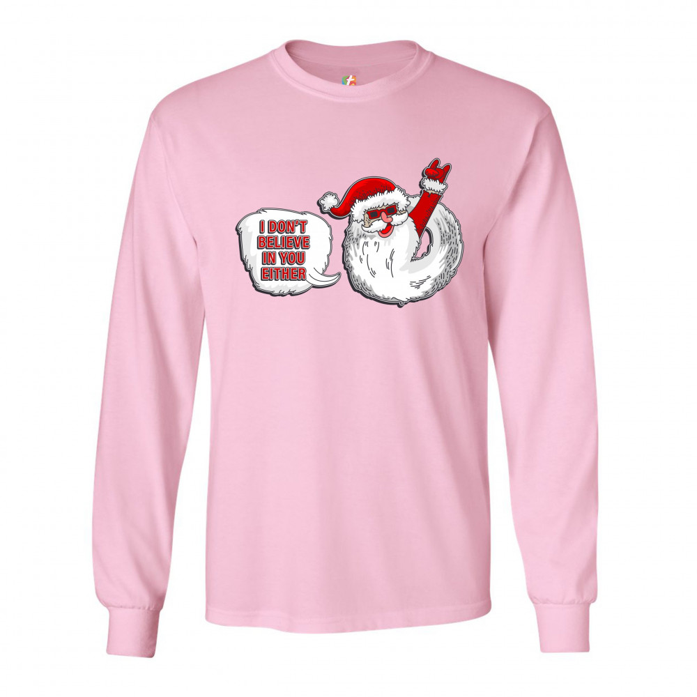 I DON'T BELIEVE IN YOU EITHER long sleeve t-shirt santa claus merry christmas pink