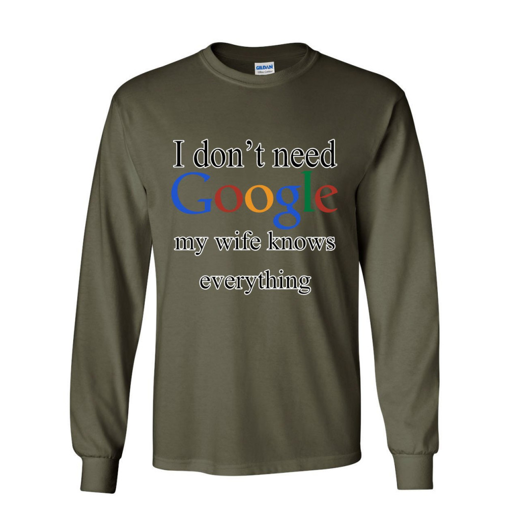I DON'T NEED GOOGLE long sleeve t-shirt funny marriage anniversary military green