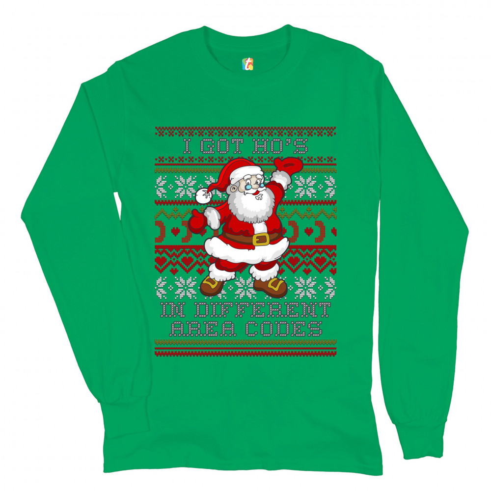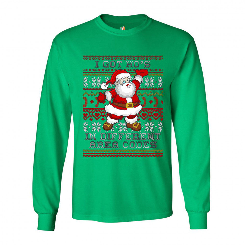I GOT HO'S IN DIFFERENT AREA CODES long sleeve t-shirt santa claus ugly sweater green