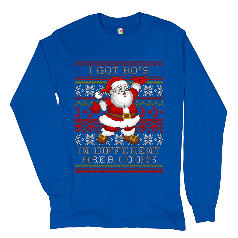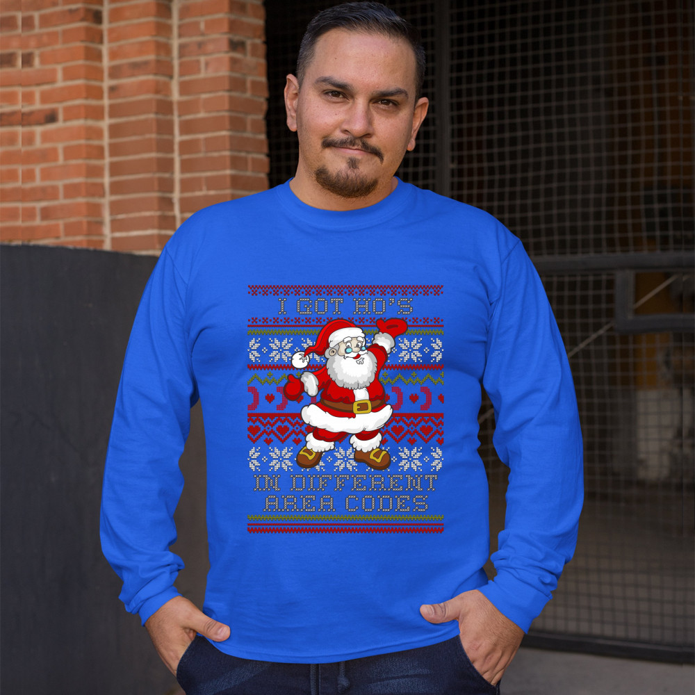 I GOT HO'S IN DIFFERENT AREA CODES long sleeve t-shirt santa claus ugly sweater royal blue