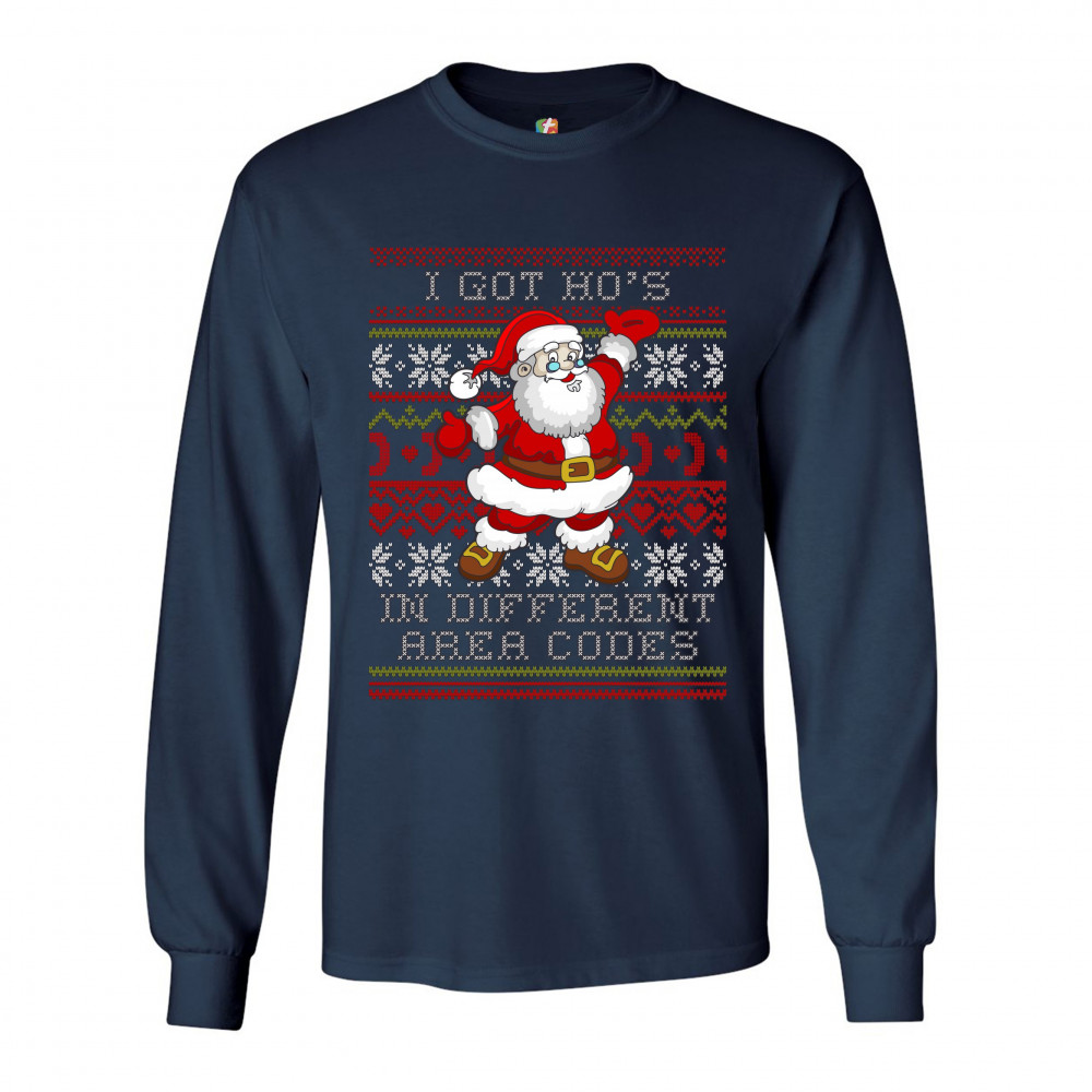 I GOT HO'S IN DIFFERENT AREA CODES long sleeve t-shirt santa claus ugly sweater navy blue