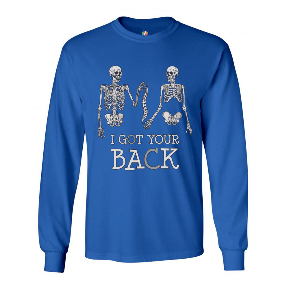 I GOT YOUR BACK long sleeve t-shirt happy halloween spooky skeletons royal blue