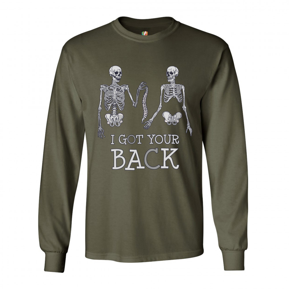 I GOT YOUR BACK long sleeve t-shirt happy halloween spooky skeletons military green