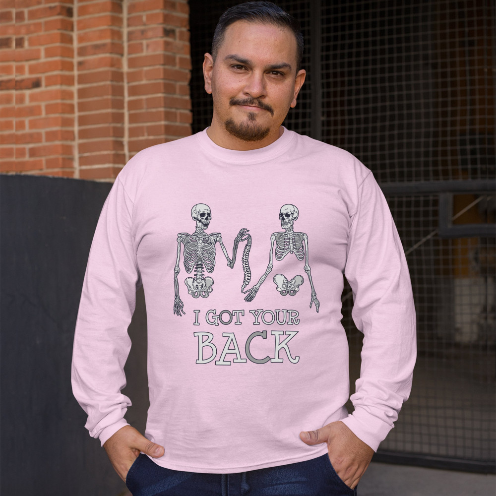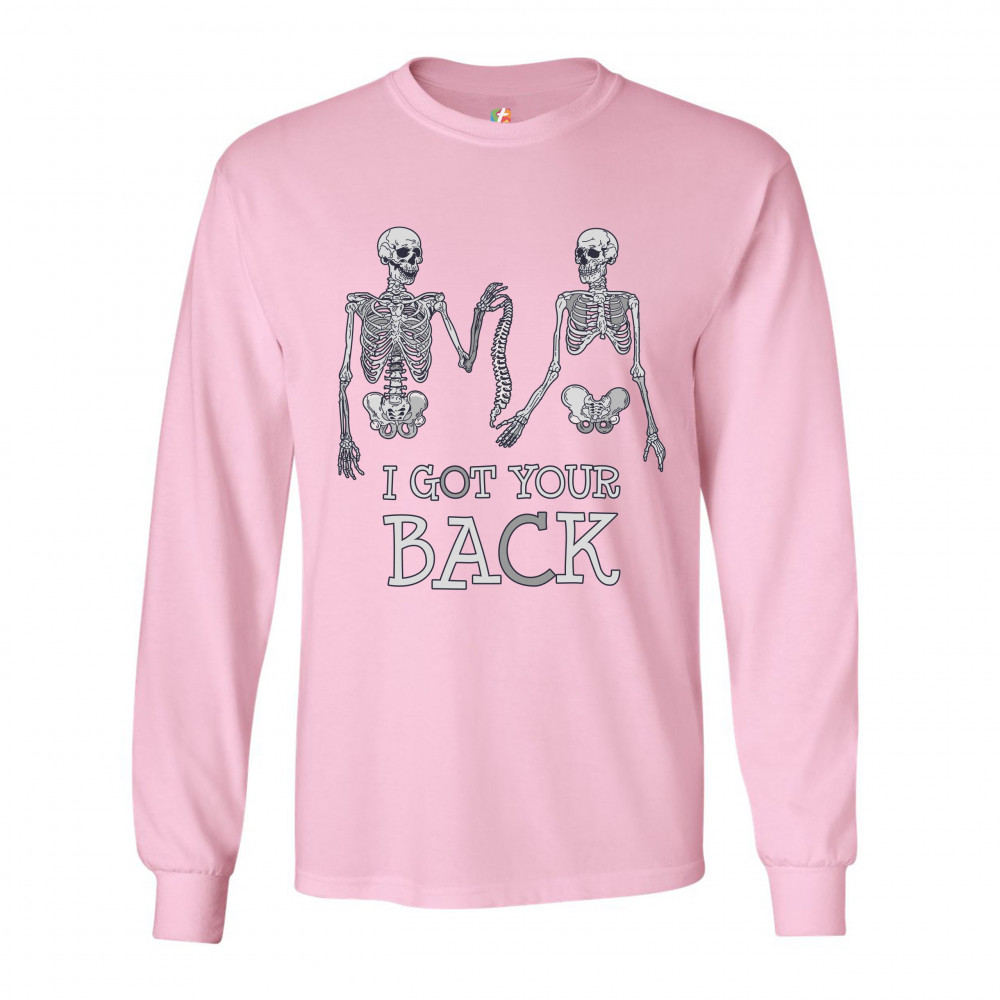I GOT YOUR BACK long sleeve t-shirt happy halloween spooky skeletons pink