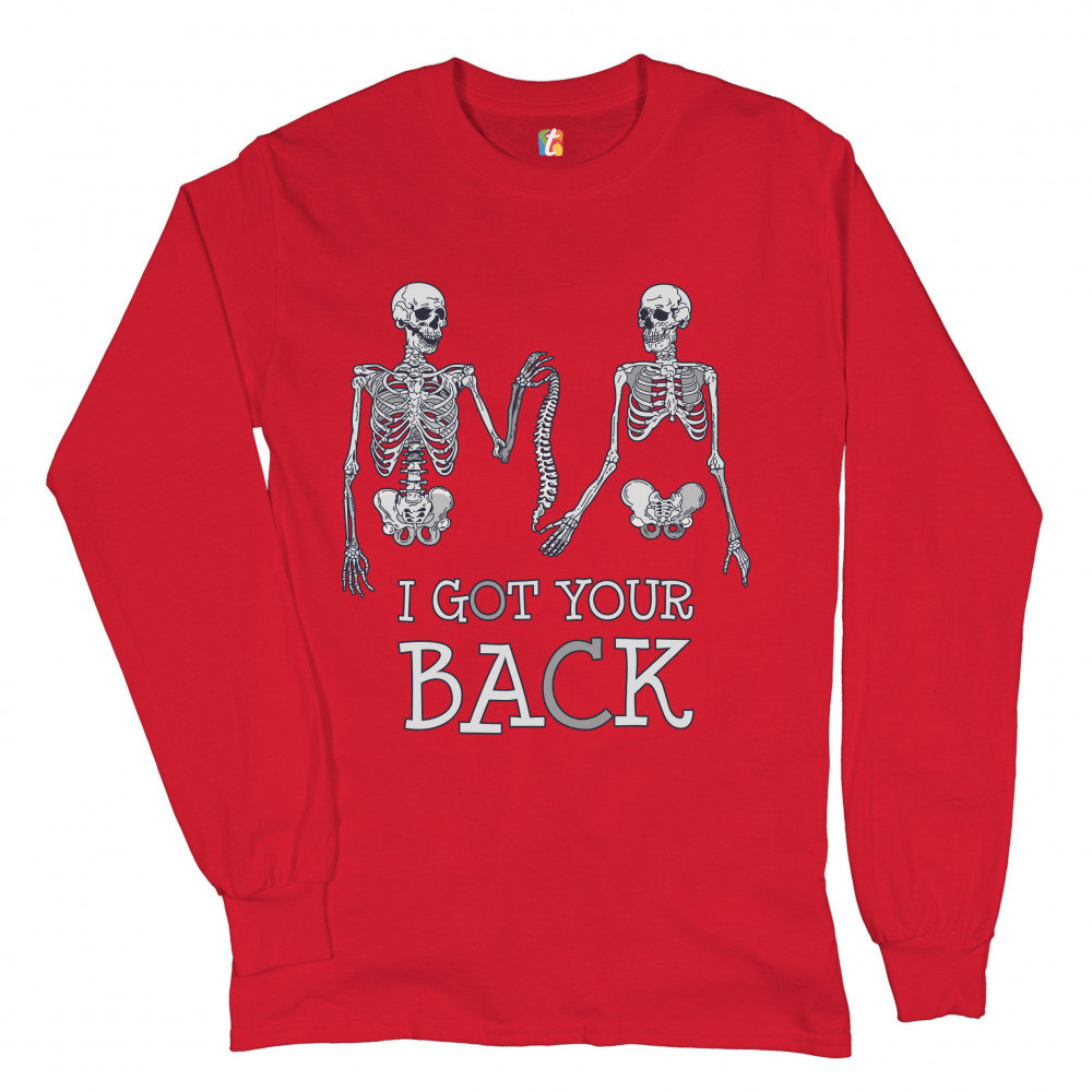 I GOT YOUR BACK long sleeve t-shirt happy halloween spooky skeletons red