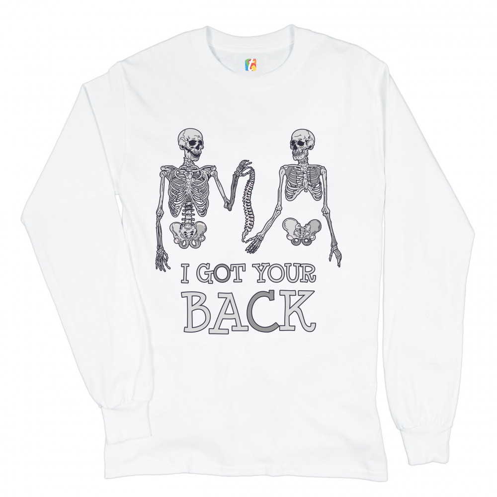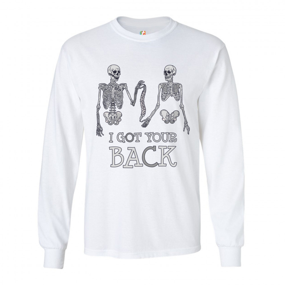 I GOT YOUR BACK long sleeve t-shirt happy halloween spooky skeletons white