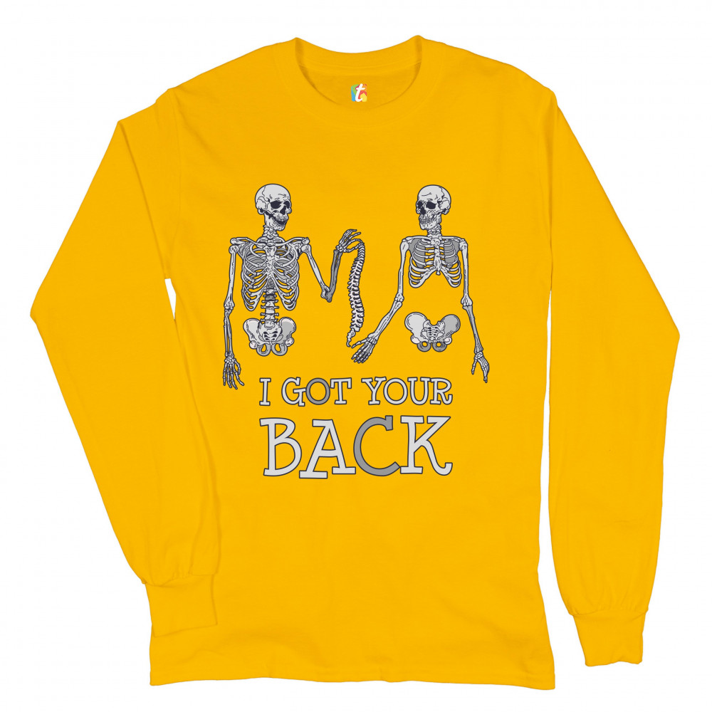 I GOT YOUR BACK long sleeve t-shirt happy halloween spooky skeletons yellow