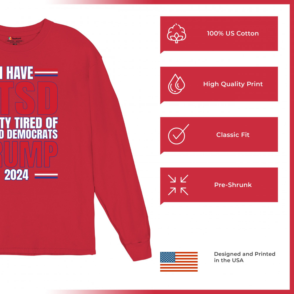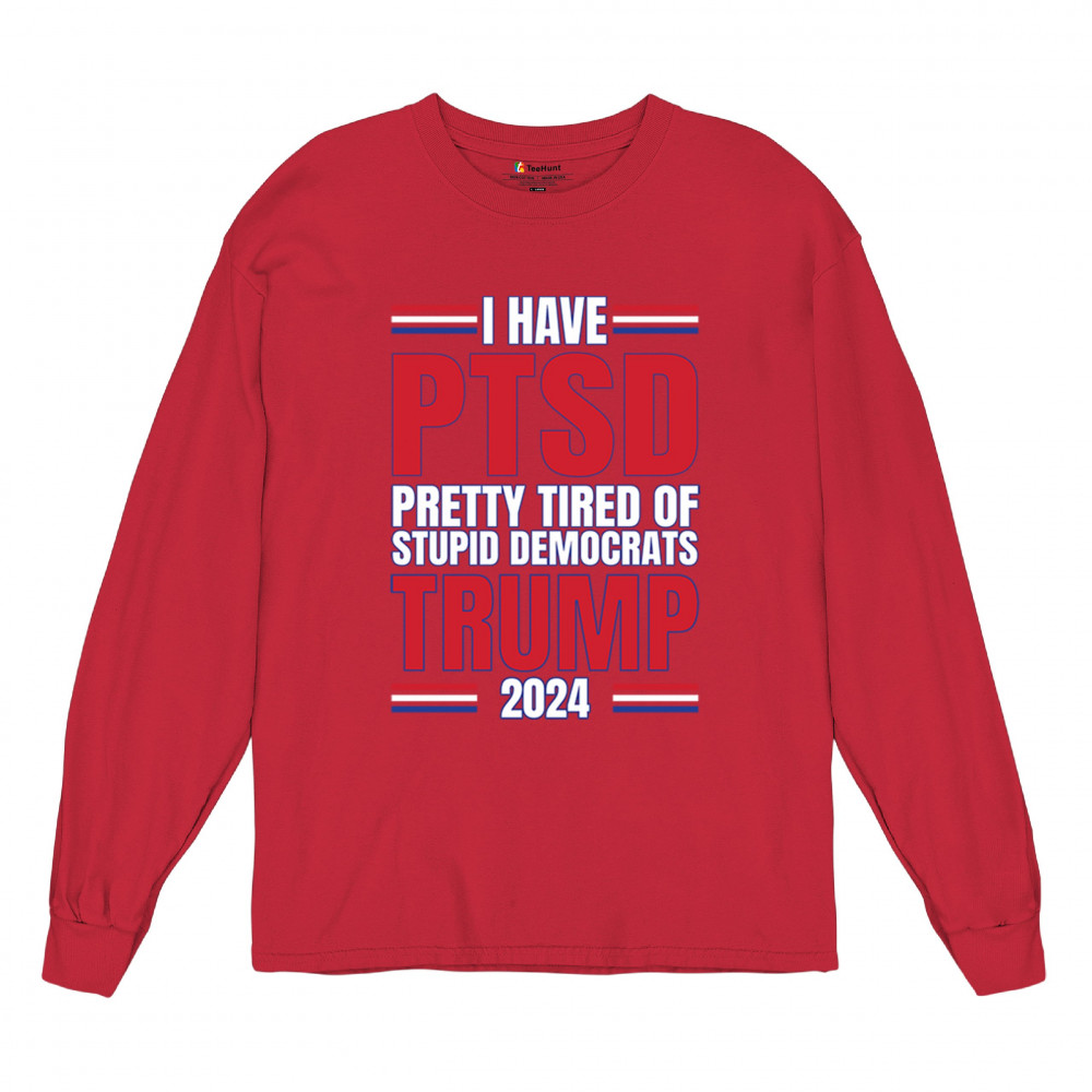 Stand up against the political chaos with "I have PTSD Pretty Tired of Democrats, Trump 2024" tee. As a dedicated supporter of conservative values, join the Trump Train to victory. Trust in God, not government, and reject the traitors to our nation. Let the American flag symbolize our resilience as we fight for President Trump and the future of America.