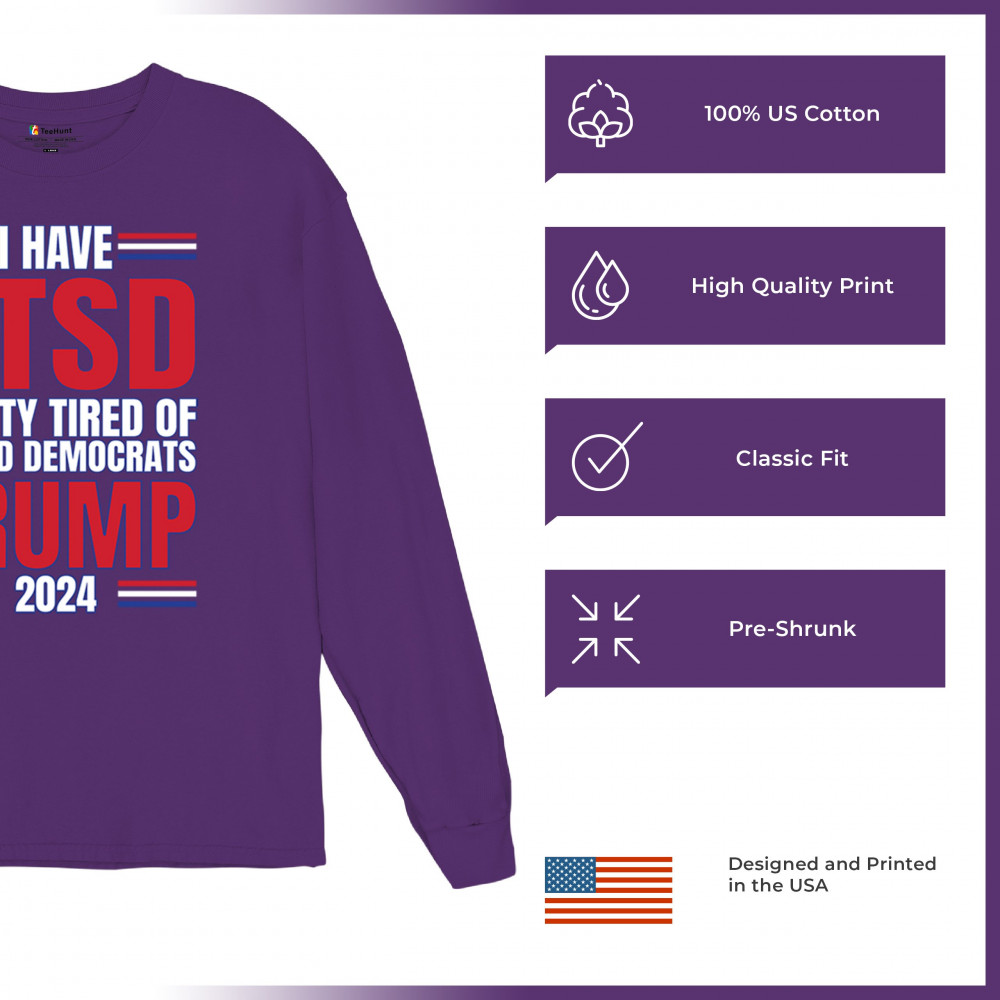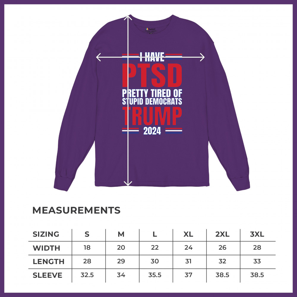 Stand up against the political chaos with "I have PTSD Pretty Tired of Democrats, Trump 2024" tee. As a dedicated supporter of conservative values, join the Trump Train to victory. Trust in God, not government, and reject the traitors to our nation. Let the American flag symbolize our resilience as we fight for President Trump and the future of America.