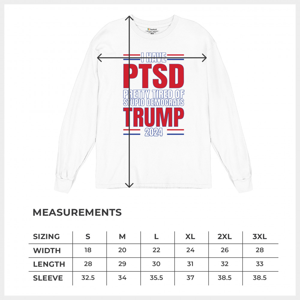 Stand up against the political chaos with "I have PTSD Pretty Tired of Democrats, Trump 2024" tee. As a dedicated supporter of conservative values, join the Trump Train to victory. Trust in God, not government, and reject the traitors to our nation. Let the American flag symbolize our resilience as we fight for President Trump and the future of America.
