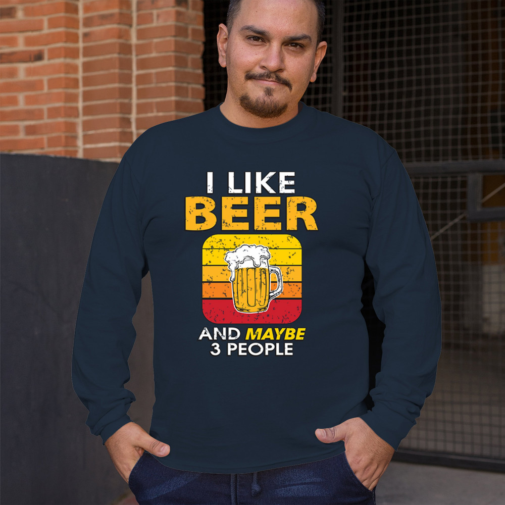 Bold, funny, and just the right amount of antisocial—this design features “I Like Beer and Maybe 3 People†with a foamy beer mug and retro pub vibes. Perfect for beer fans with dry humor and party grumps who prefer cold brews over crowds. Great for bar nights, Oktoberfest, or everyday mood declarations.