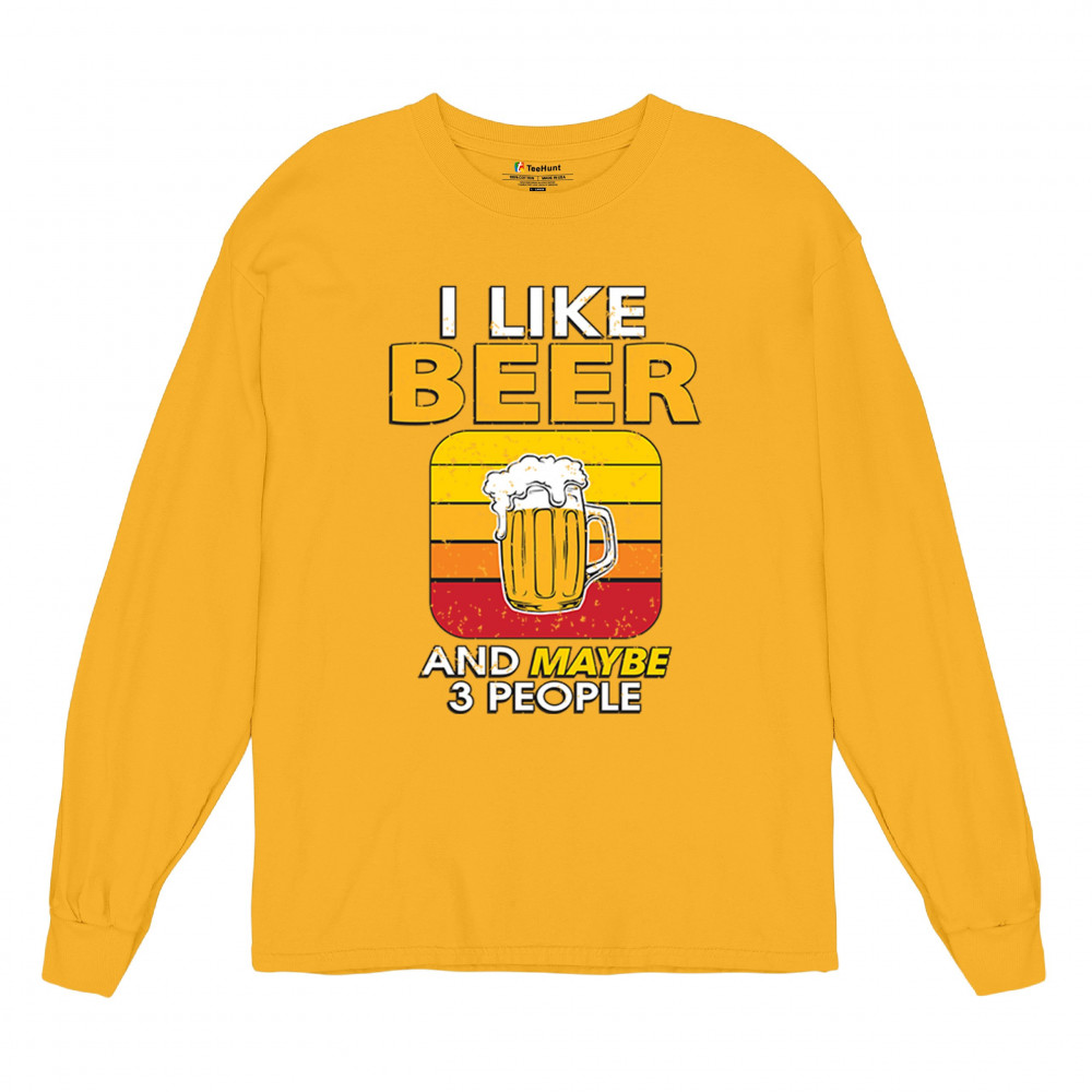 Bold, funny, and just the right amount of antisocial—this design features “I Like Beer and Maybe 3 People†with a foamy beer mug and retro pub vibes. Perfect for beer fans with dry humor and party grumps who prefer cold brews over crowds. Great for bar nights, Oktoberfest, or everyday mood declarations.
