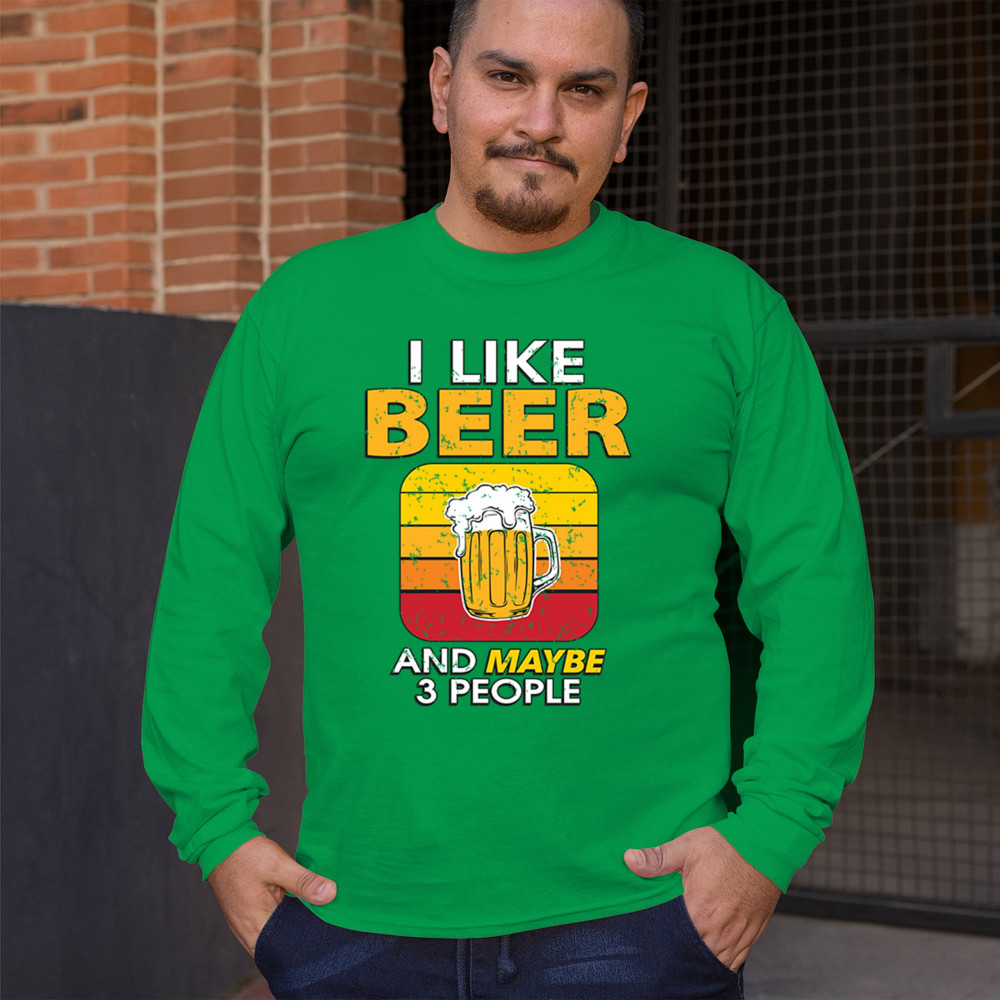 Bold, funny, and just the right amount of antisocial—this design features “I Like Beer and Maybe 3 People†with a foamy beer mug and retro pub vibes. Perfect for beer fans with dry humor and party grumps who prefer cold brews over crowds. Great for bar nights, Oktoberfest, or everyday mood declarations.