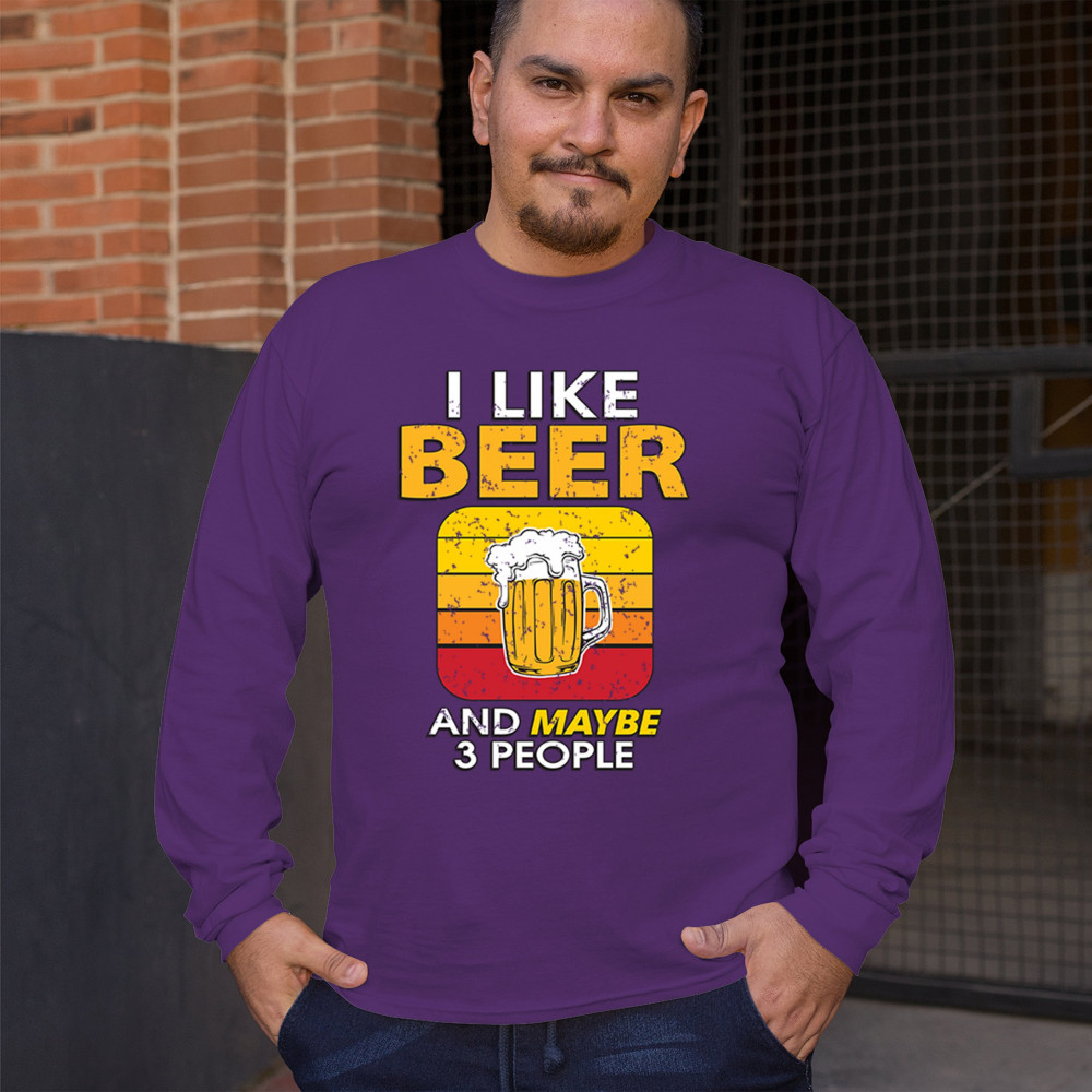 Bold, funny, and just the right amount of antisocial—this design features “I Like Beer and Maybe 3 People†with a foamy beer mug and retro pub vibes. Perfect for beer fans with dry humor and party grumps who prefer cold brews over crowds. Great for bar nights, Oktoberfest, or everyday mood declarations.