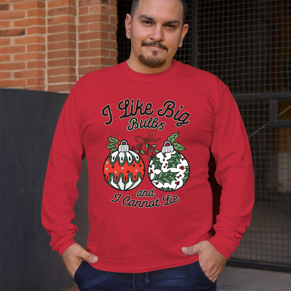 Light up the holiday season with our "I Like Big Bulbs" design, a playful and festive addition to any celebration. This unique design is perfect for cozy family gatherings, office parties, or Secret Santa exchanges, adding a humorous twist to your holiday wardrobe. Ideal for matching group outfits or gift exchanges, it captures the Christmas spirit in a fun and memorable way. From jolly gatherings to festive gift ideas, this design brings cheer to every holiday event.