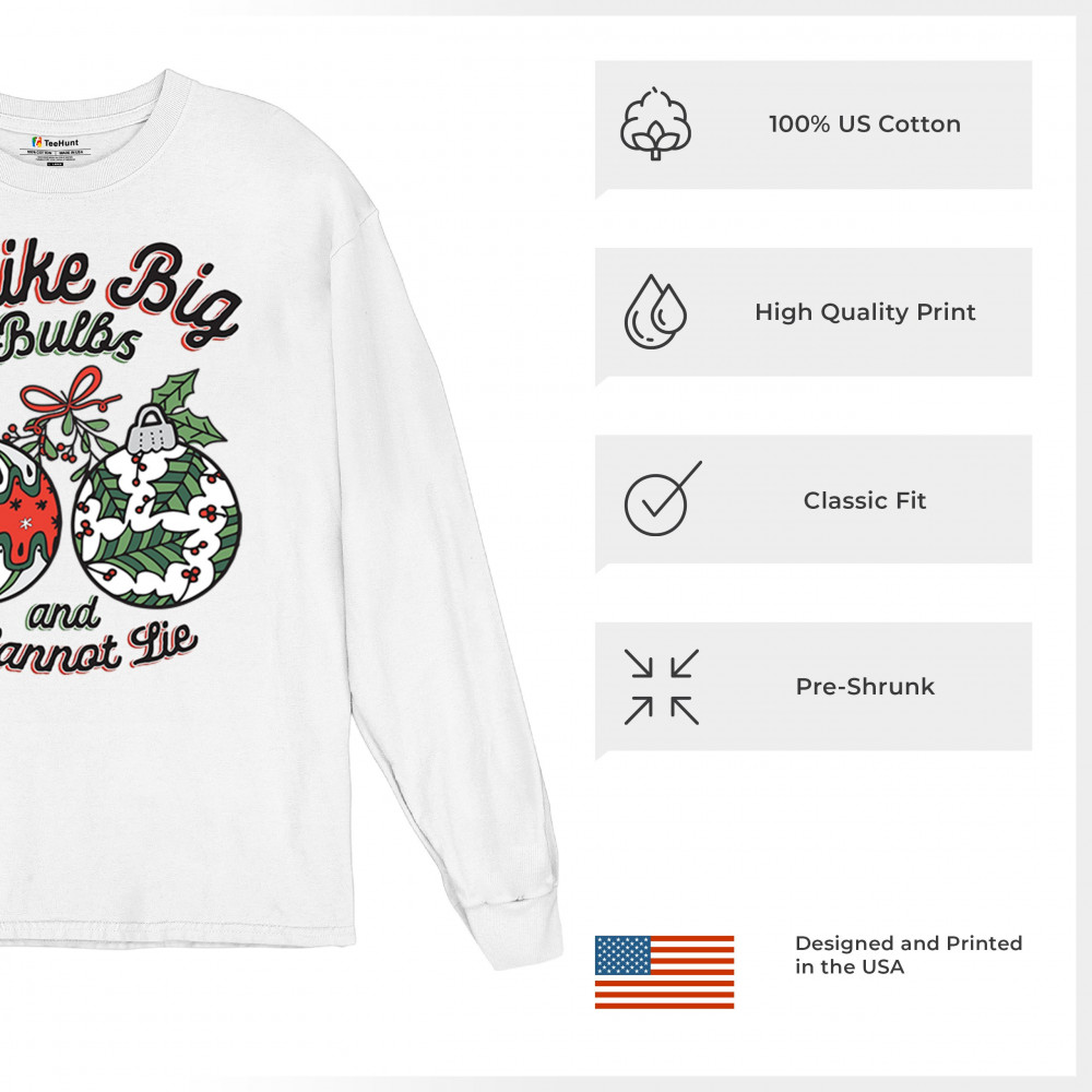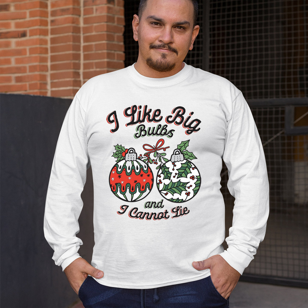 Light up the holiday season with our "I Like Big Bulbs" design, a playful and festive addition to any celebration. This unique design is perfect for cozy family gatherings, office parties, or Secret Santa exchanges, adding a humorous twist to your holiday wardrobe. Ideal for matching group outfits or gift exchanges, it captures the Christmas spirit in a fun and memorable way. From jolly gatherings to festive gift ideas, this design brings cheer to every holiday event.
