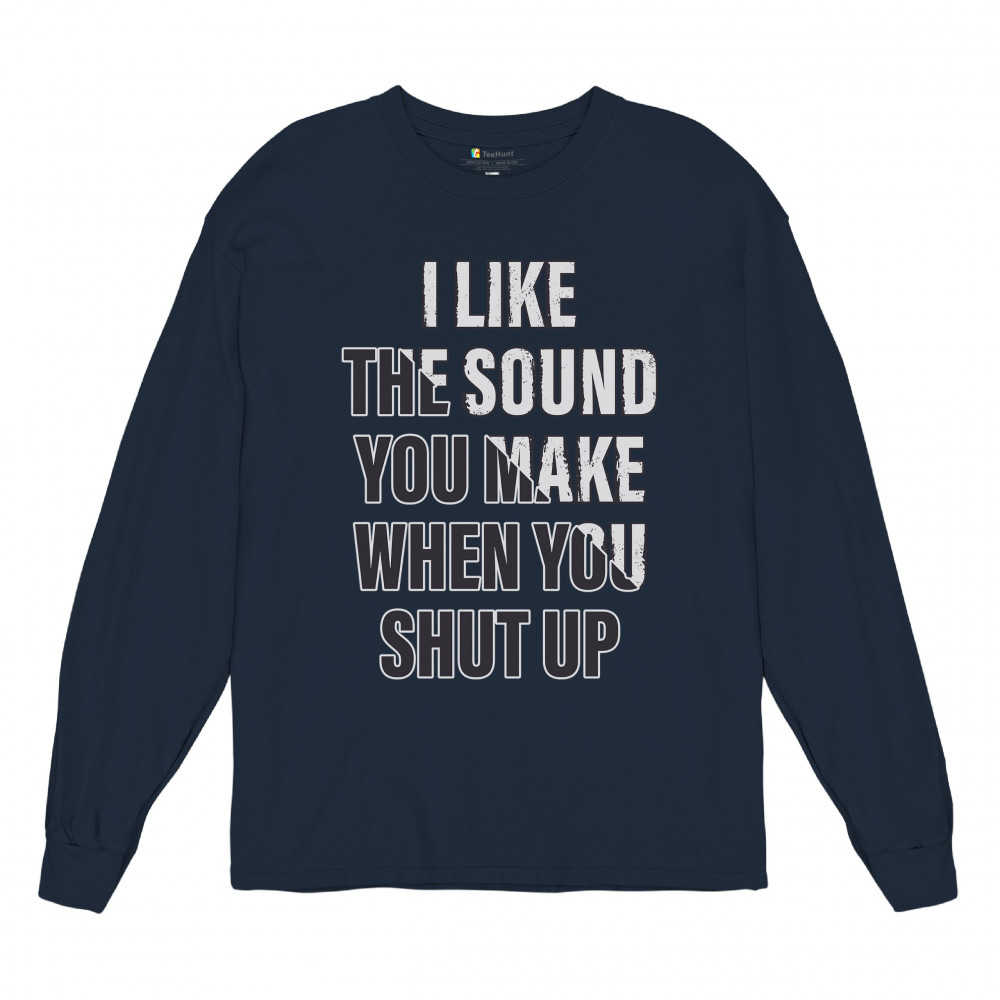 I LIKE THE SOUND YOU MAKE WHEN YOU SHUT UP long sleeve t-shirt sarcastic navy blue