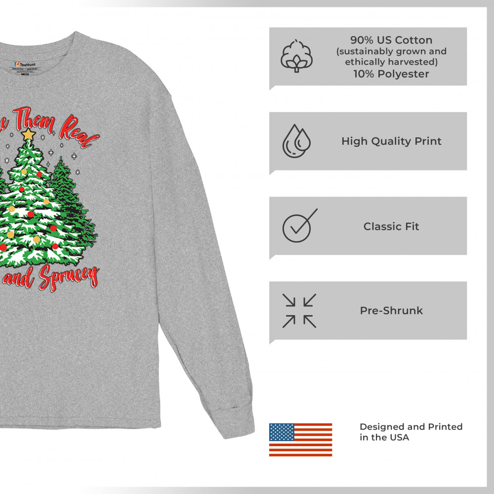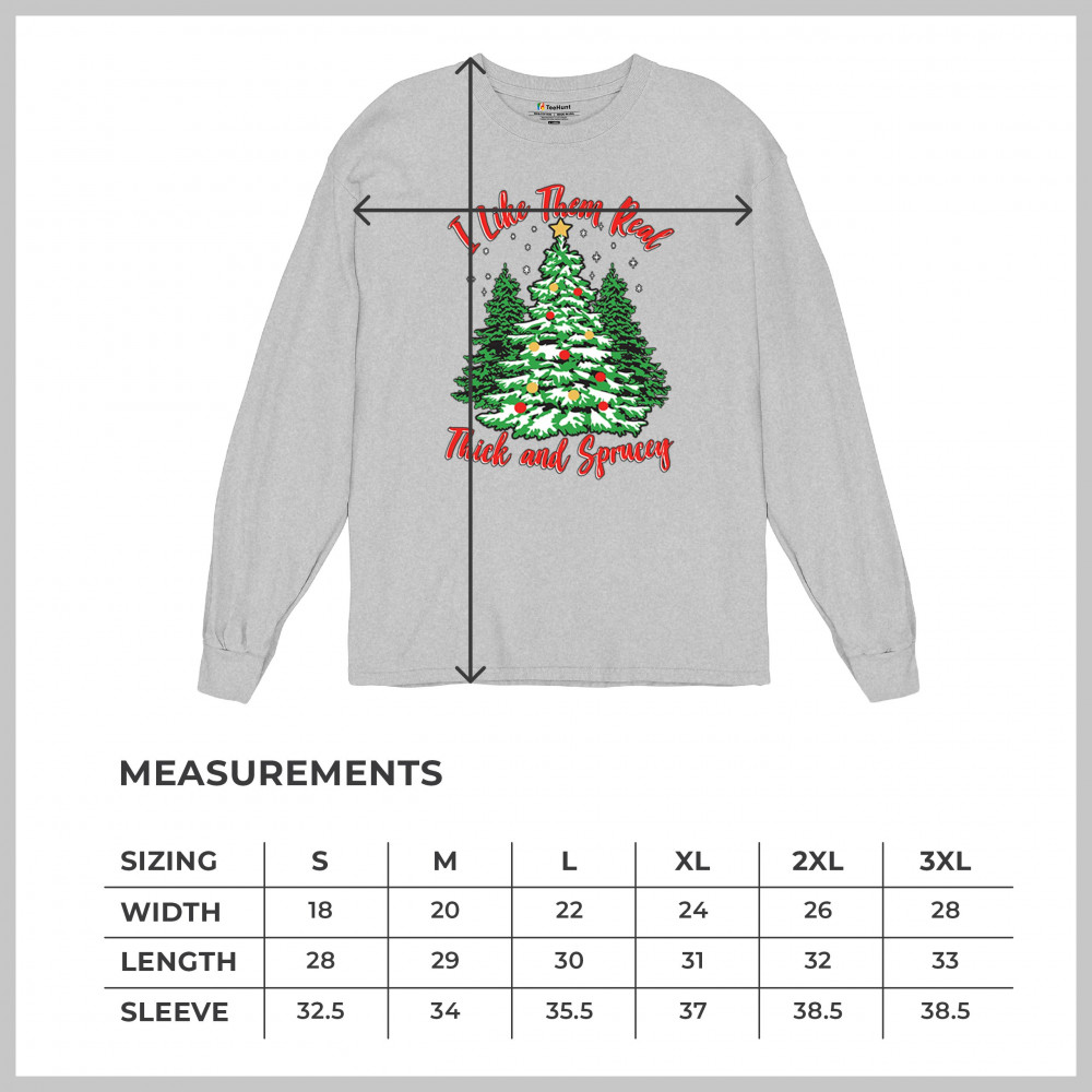 Enjoy the holiday season with our "I Like Them Real, Thick, and Sprucey" Christmas tree design, perfect for festive gatherings and holiday gifting!