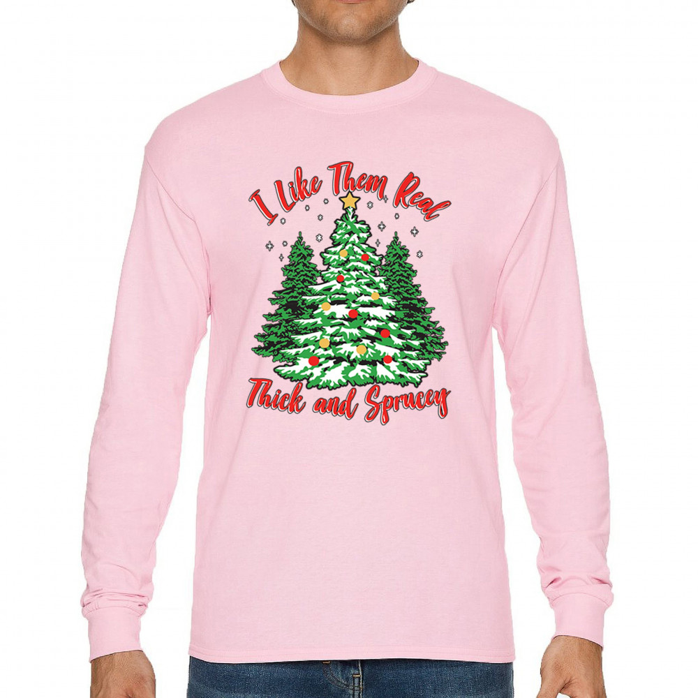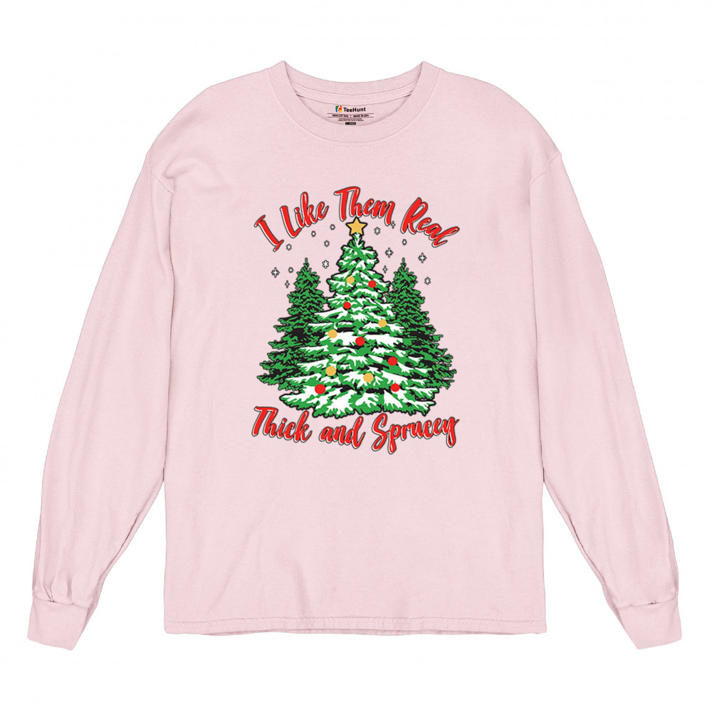 Enjoy the holiday season with our "I Like Them Real, Thick, and Sprucey" Christmas tree design, perfect for festive gatherings and holiday gifting!