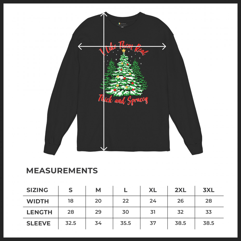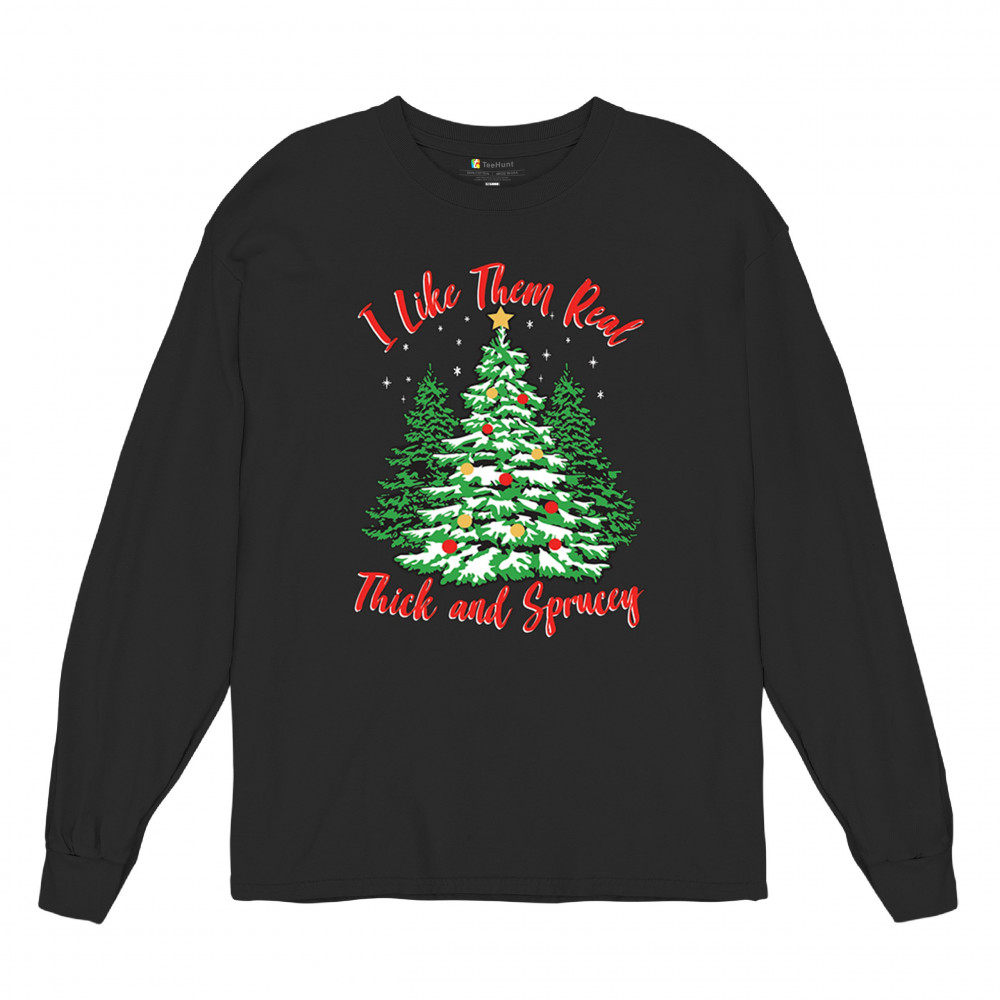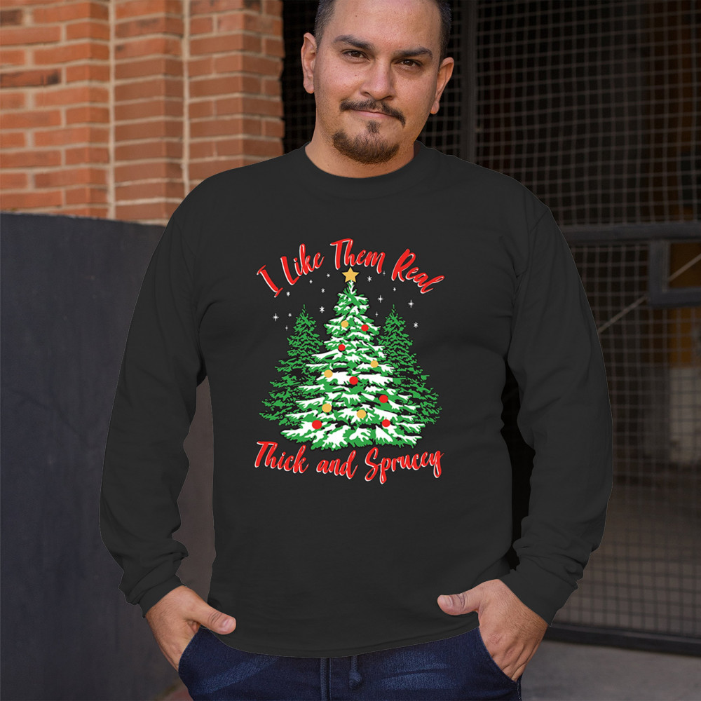 I LIKE THEM REAL THICK AND SPRUCEY long sleeve t-shirt christmas adult humor black