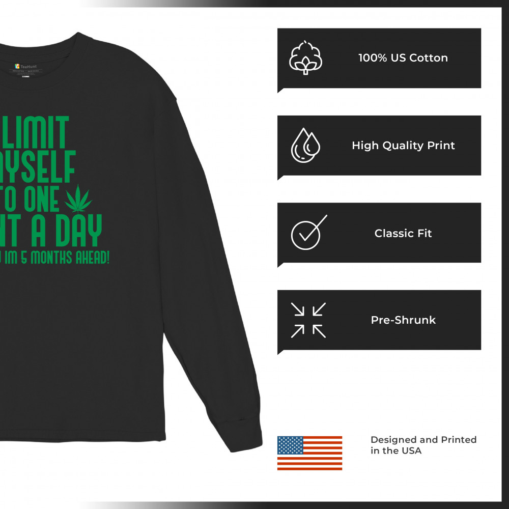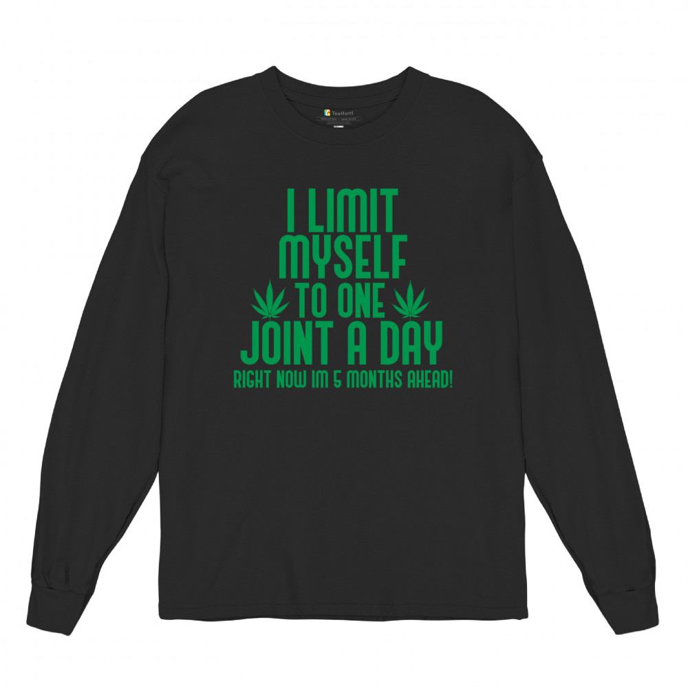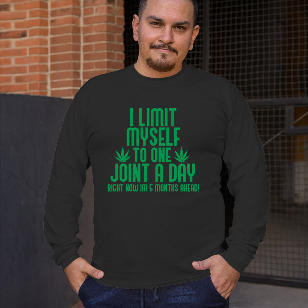 I LIMIT MYSELF TO 1 JOINT A DAY long sleeve t-shirt funny 420 weed marijuana black