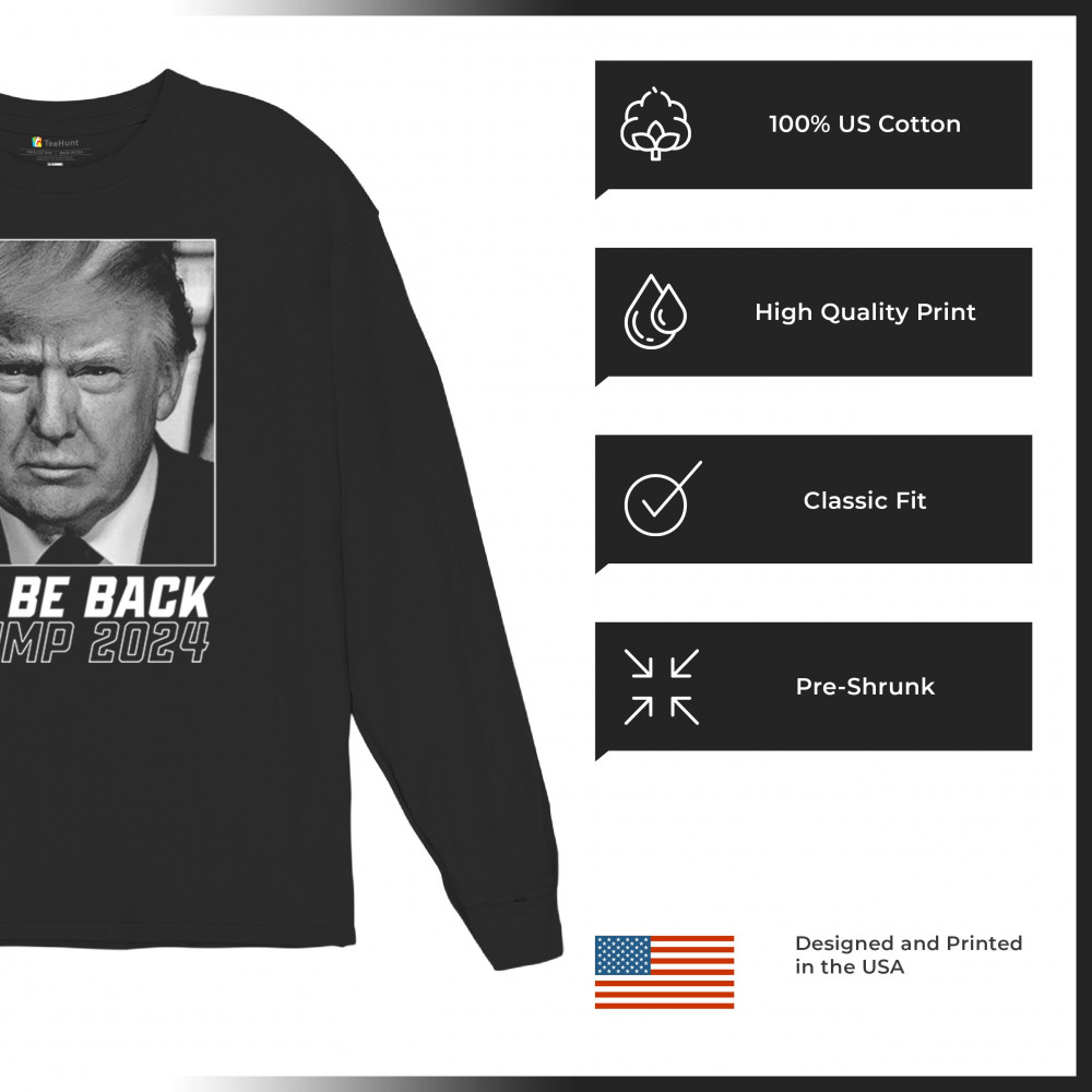 Gear up for Trump's 2024 return with our 'I'll Be Back. Trump 2024' design. Perfect for conservative patriots, it symbolizes resilience and unwavering support. Stand tall and declare your allegiance.
