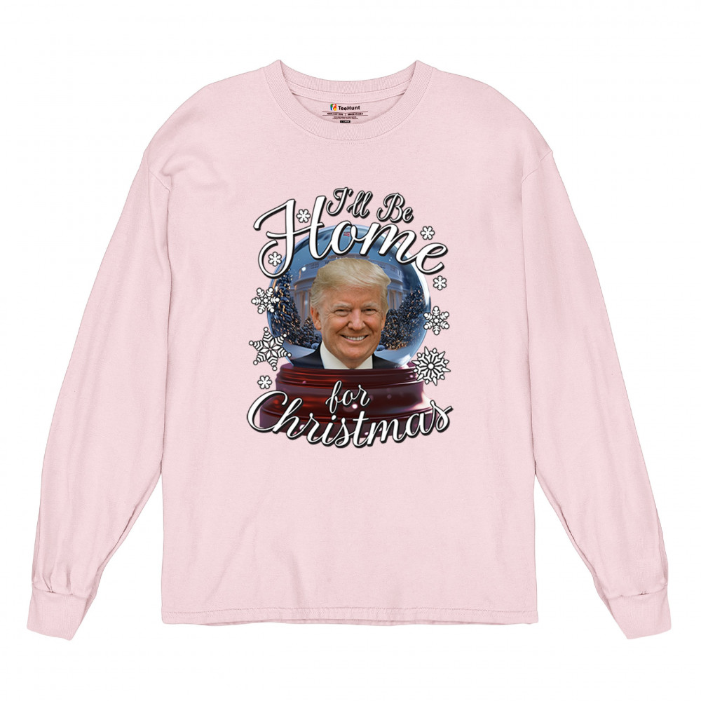 Get ready for the ultimate blend of holiday cheer and American pride with this "I'll Be Home for Christmas" design featuring Donald J. Trump in a festive snow globe. Perfect for gifts, holiday parties, or cozy mornings, this standout piece celebrates the season with style. Whether paired with matching pajamas or a cozy sweatshirt, it's a perfect way to add patriotic charm to your Feliz Navidad celebrations or office gatherings.