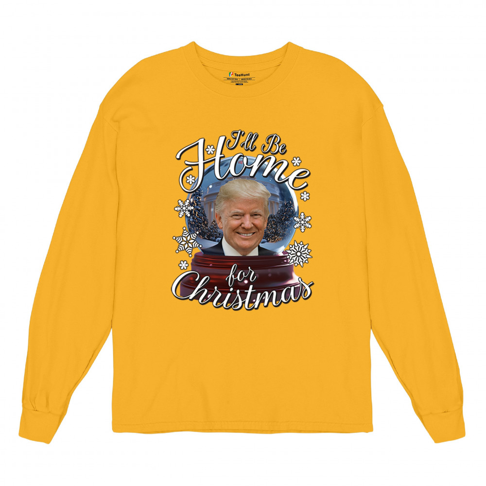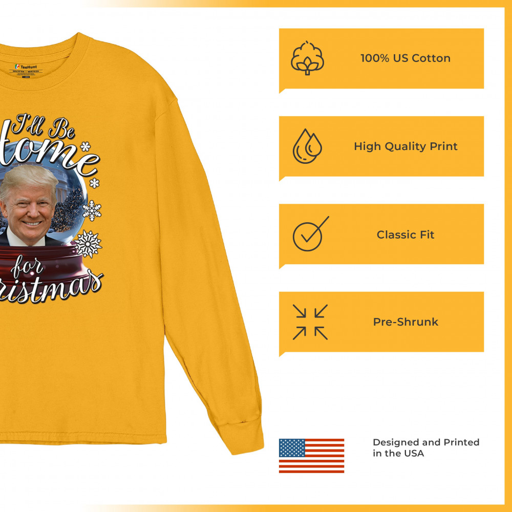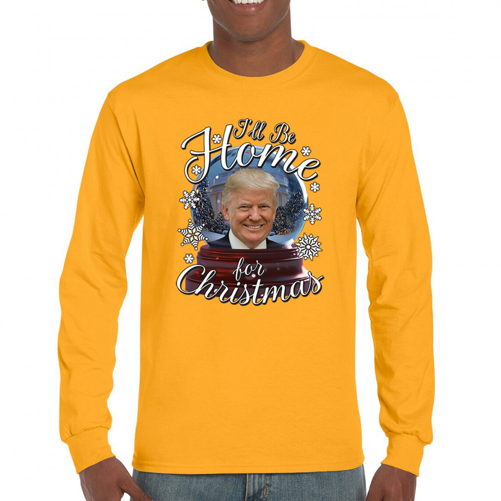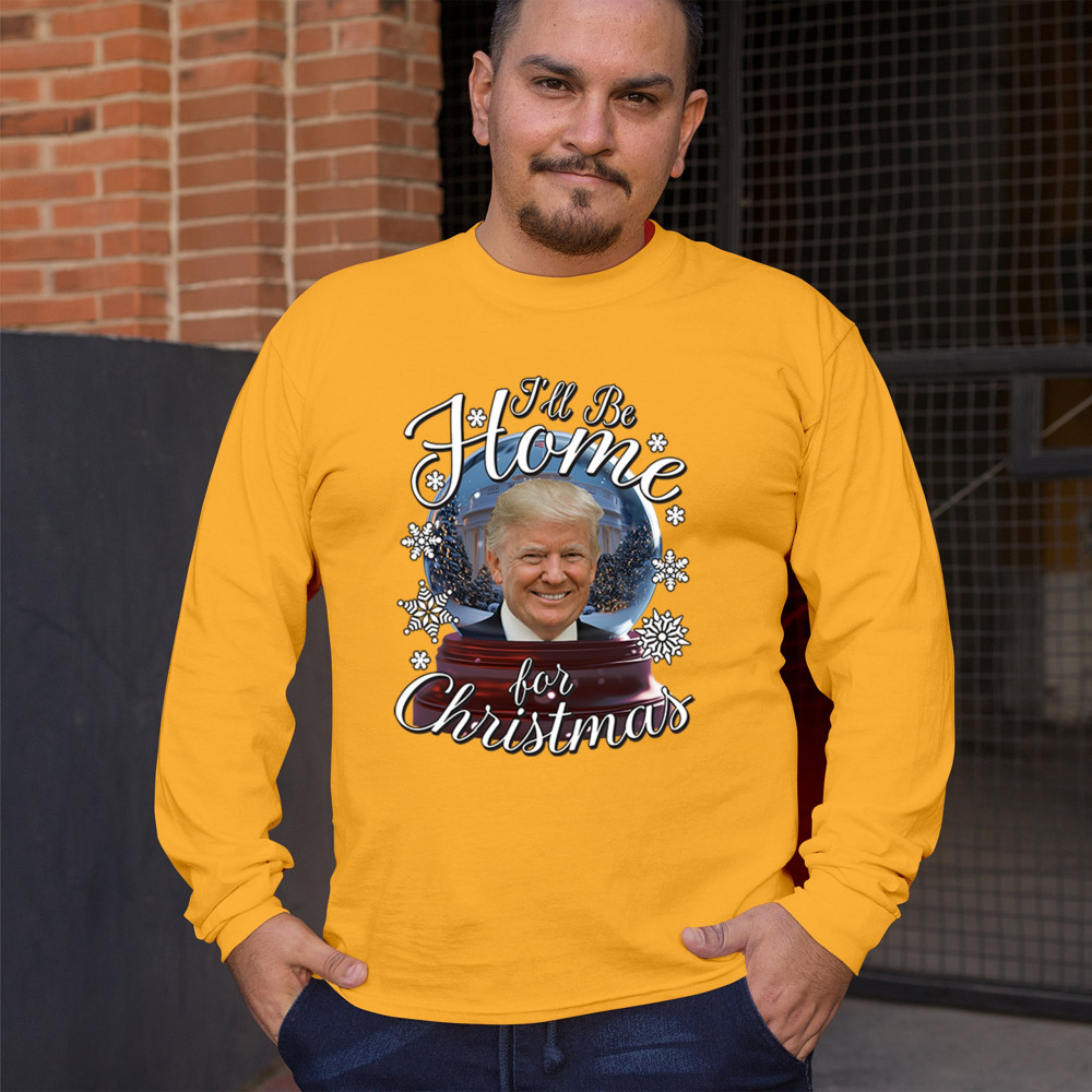 Get ready for the ultimate blend of holiday cheer and American pride with this "I'll Be Home for Christmas" design featuring Donald J. Trump in a festive snow globe. Perfect for gifts, holiday parties, or cozy mornings, this standout piece celebrates the season with style. Whether paired with matching pajamas or a cozy sweatshirt, it's a perfect way to add patriotic charm to your Feliz Navidad celebrations or office gatherings.