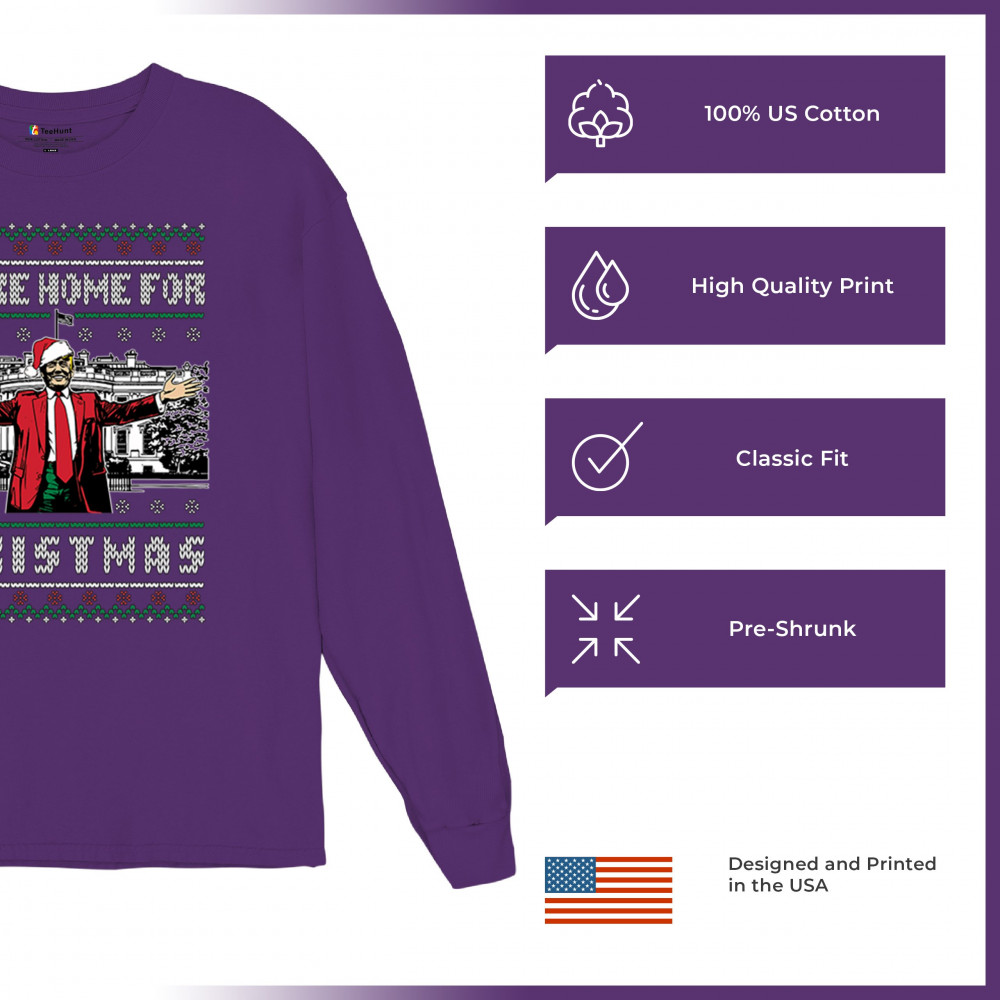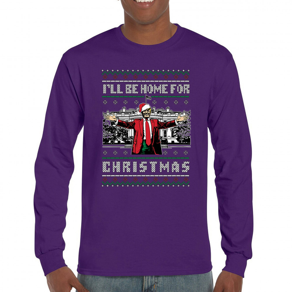 Get into the Christmas spirit with the "I'll Be Home for Christmas" design featuring Donald J. Trump in a festive holiday setting. Perfect for ugly sweater contests, holiday gatherings, and unique gifts for supporters, this humorous design adds a bold, patriotic touch to your seasonal celebrations. Whether for cozy mornings or office parties, it's a must-have for holiday cheer.