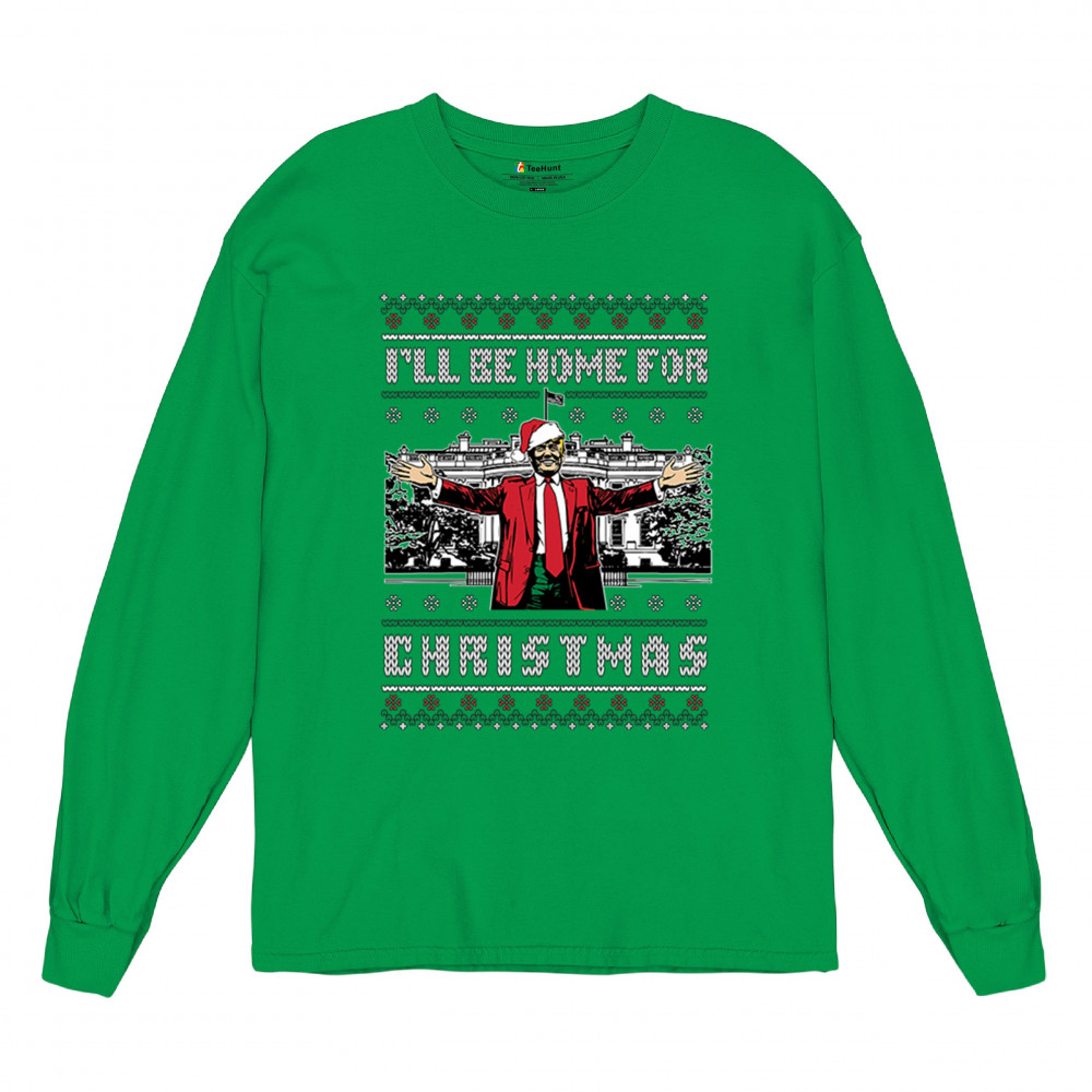 Add humor and patriotism to your holidays with this festive Trump "I'll Be Home for Christmas" design—perfect for parties and unique gifts!
