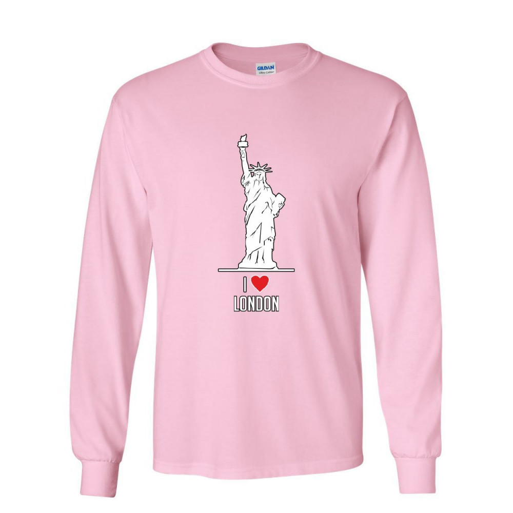 I HEART LONDON i love london long sleeve t-shirt funny new york statue of liberty tourist tee light pink