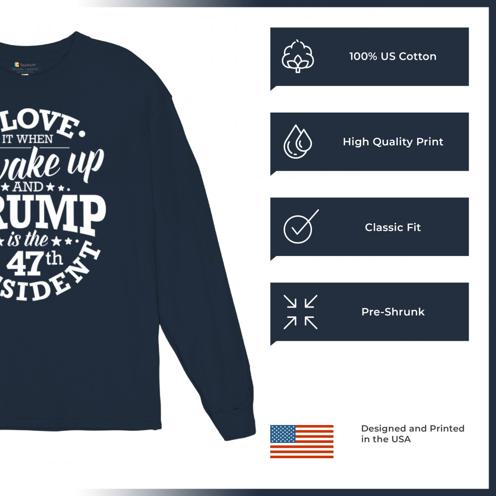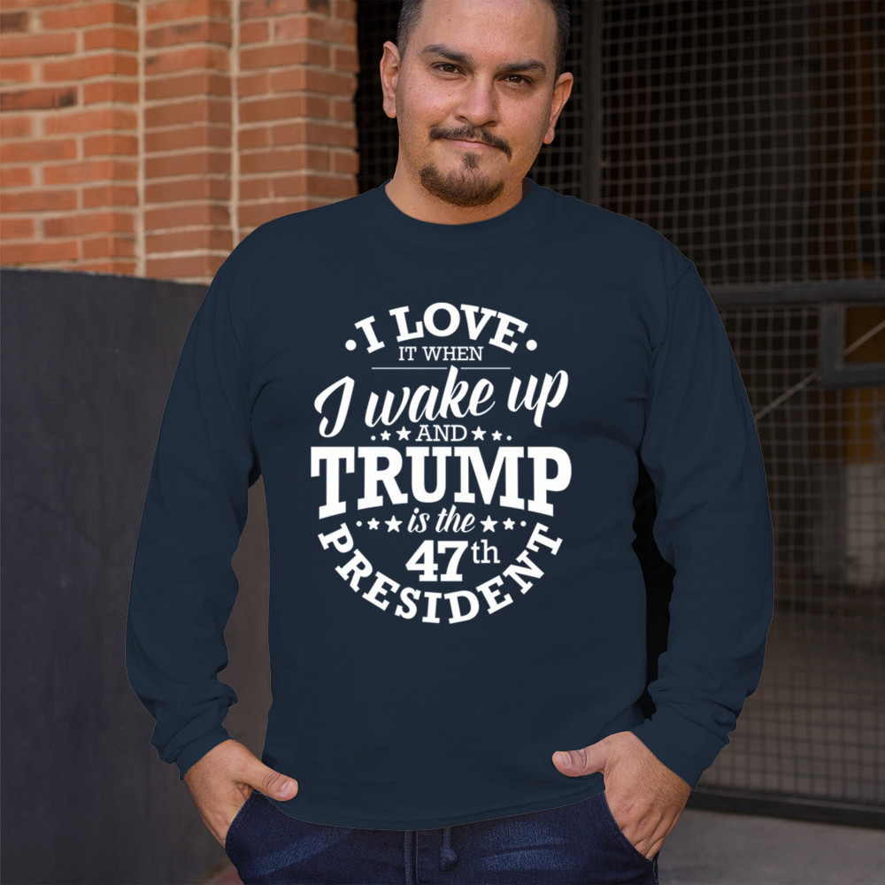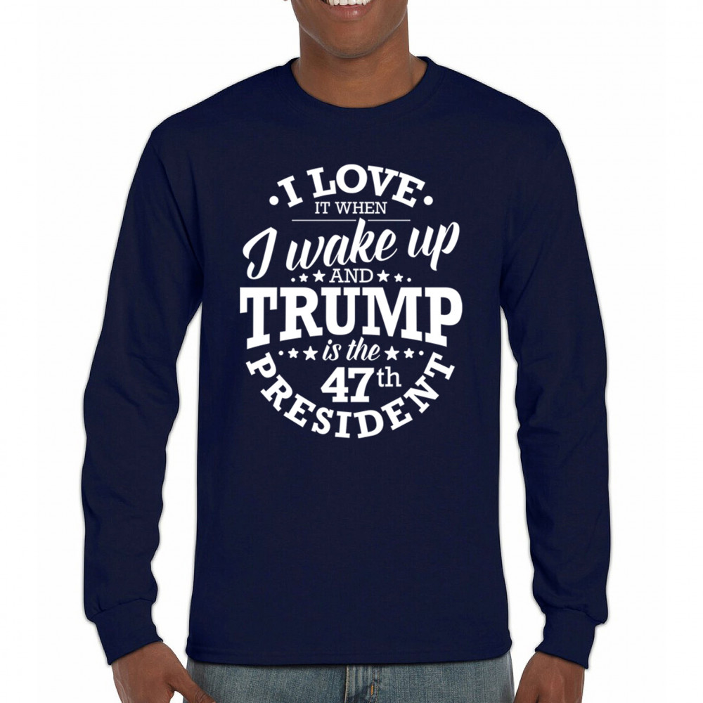 This "I Love It When I Wake Up and Trump is the 47th President" design is the ultimate expression of support for Donald J. Trump and his vision for America. Join the ranks of proud conservatives, Republicans, and America First advocates who are excited about the 47th President’s leadership. Celebrate the Red Wave and stay true to the values of freedom and strength that Trump embodies. Perfect for rallies, gatherings, and everyday patriotic wear.