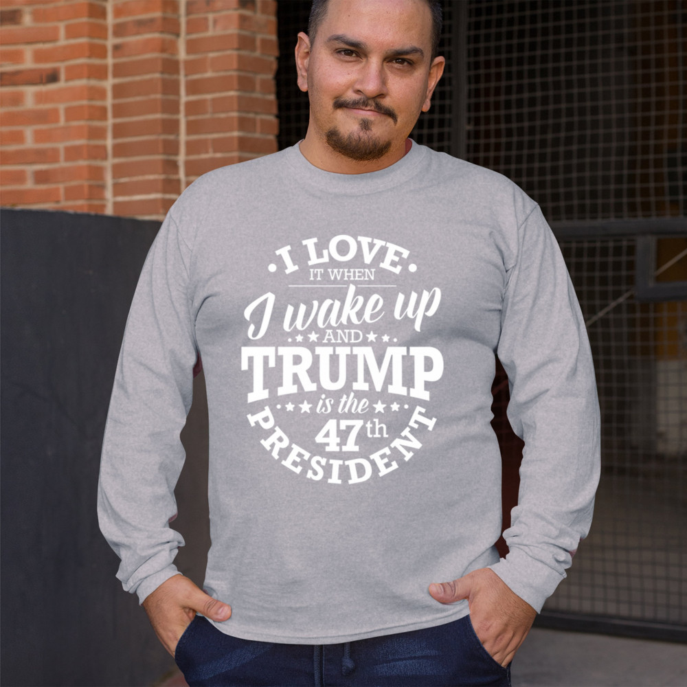This "I Love It When I Wake Up and Trump is the 47th President" design is the ultimate expression of support for Donald J. Trump and his vision for America. Join the ranks of proud conservatives, Republicans, and America First advocates who are excited about the 47th President’s leadership. Celebrate the Red Wave and stay true to the values of freedom and strength that Trump embodies. Perfect for rallies, gatherings, and everyday patriotic wear.