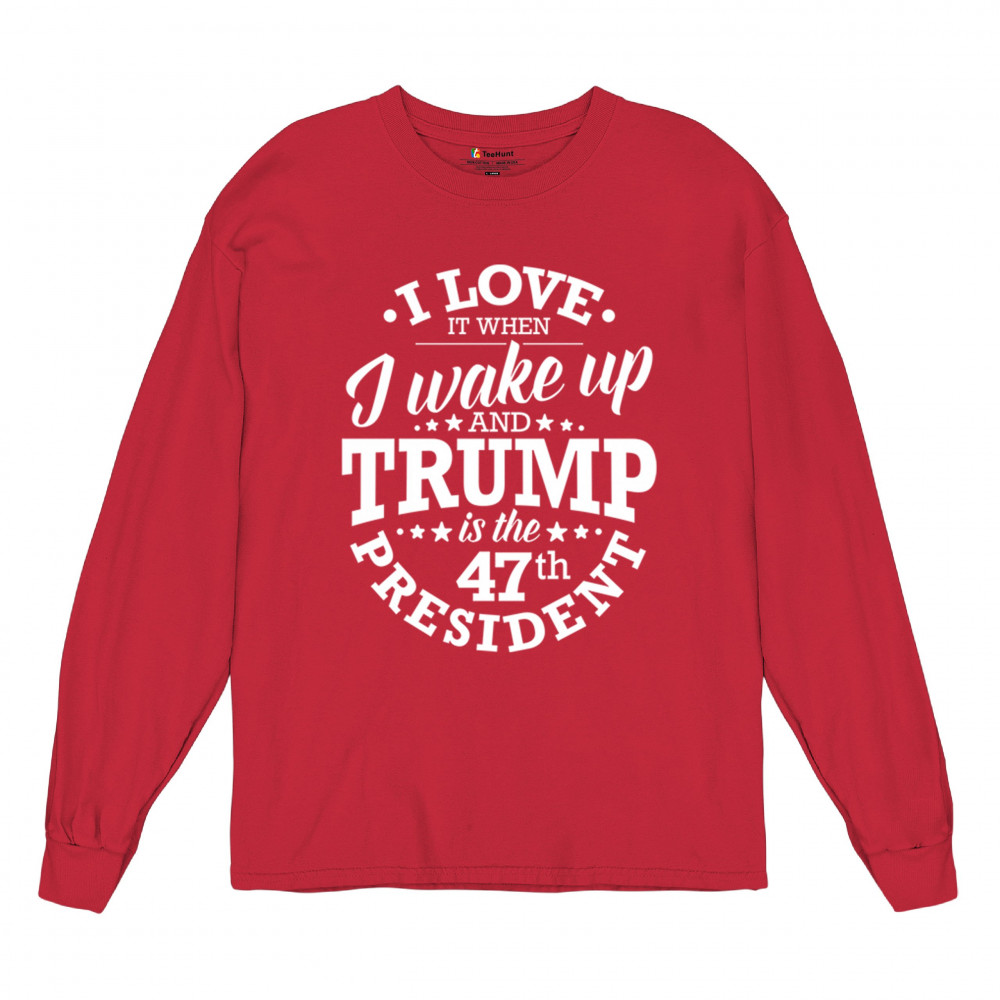 This "I Love It When I Wake Up and Trump is the 47th President" design is the ultimate expression of support for Donald J. Trump and his vision for America. Join the ranks of proud conservatives, Republicans, and America First advocates who are excited about the 47th President’s leadership. Celebrate the Red Wave and stay true to the values of freedom and strength that Trump embodies. Perfect for rallies, gatherings, and everyday patriotic wear.