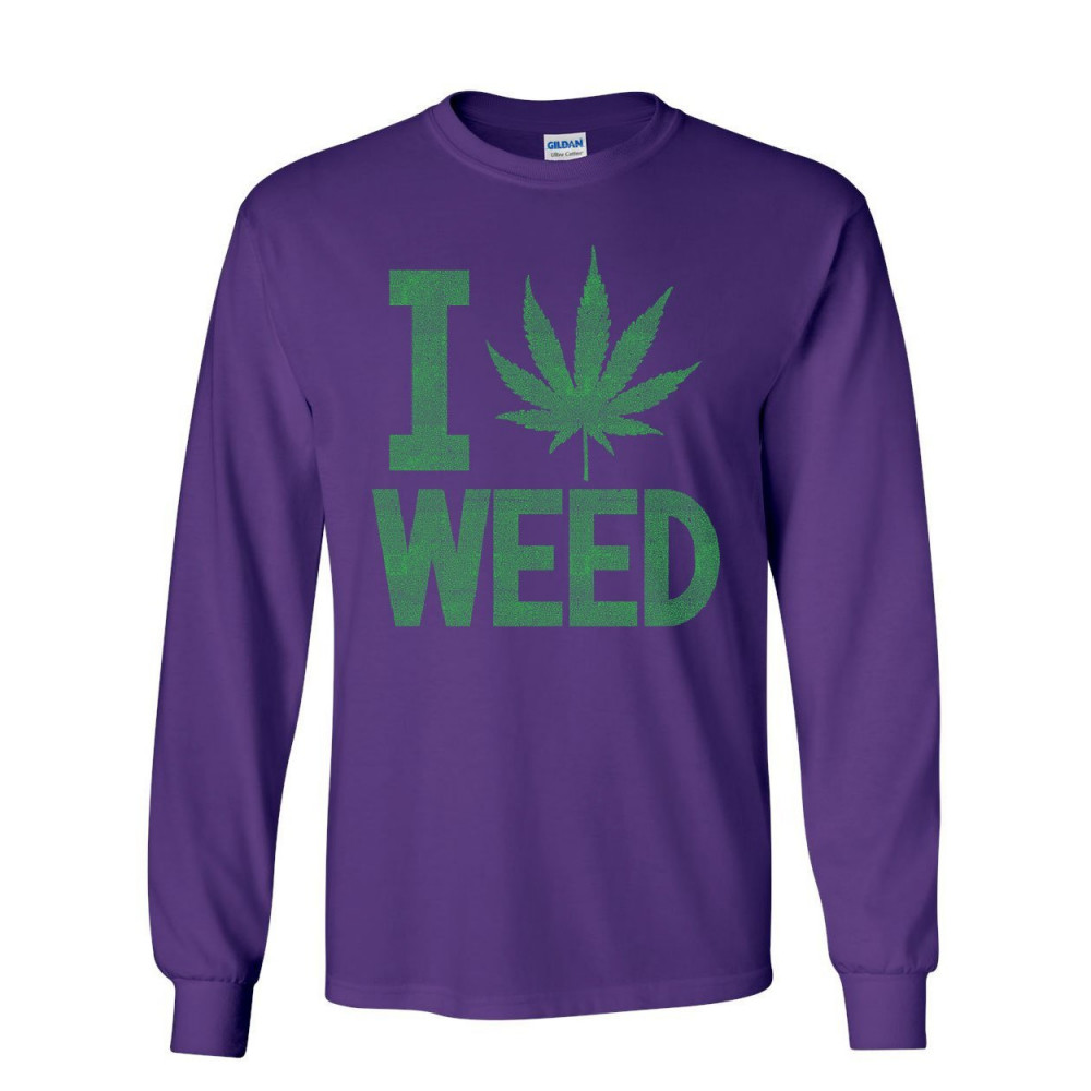 I LOVE WEED long sleeve t-shirt smoking 420 pot reggae rasta marijuana kush tee purple