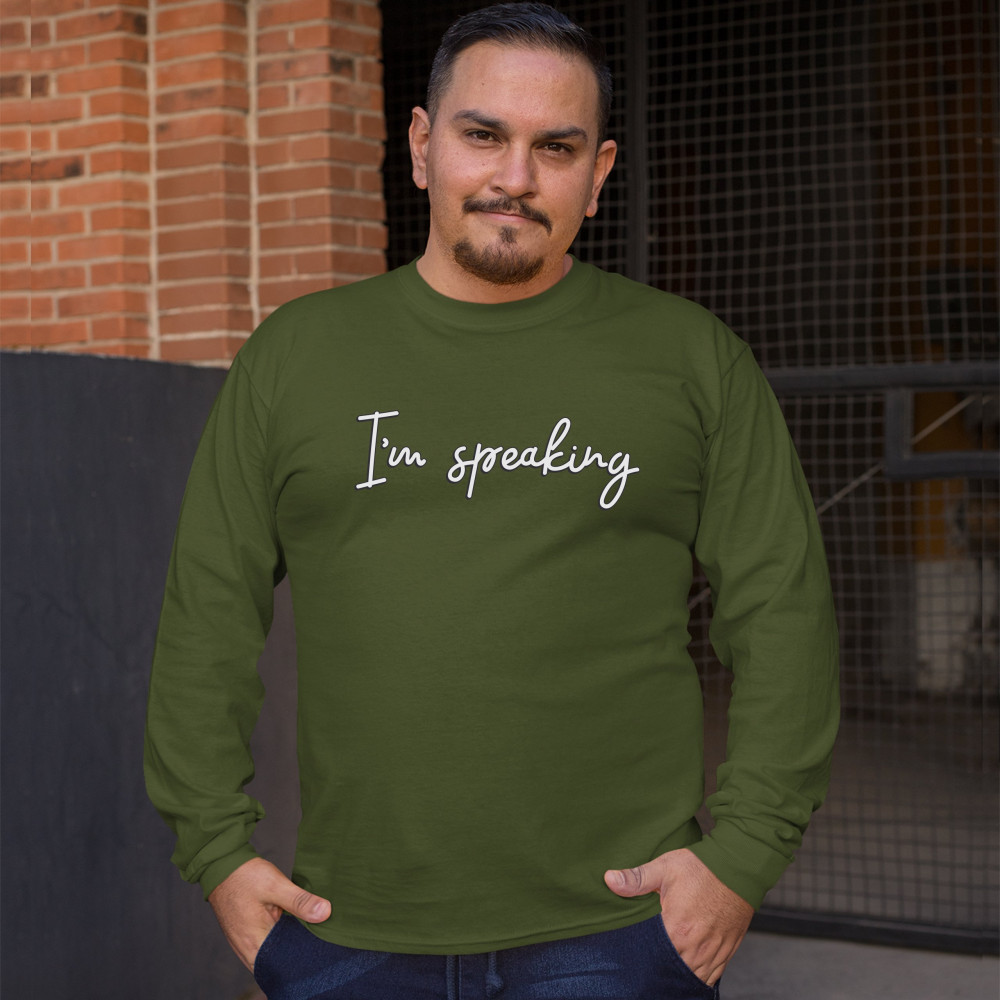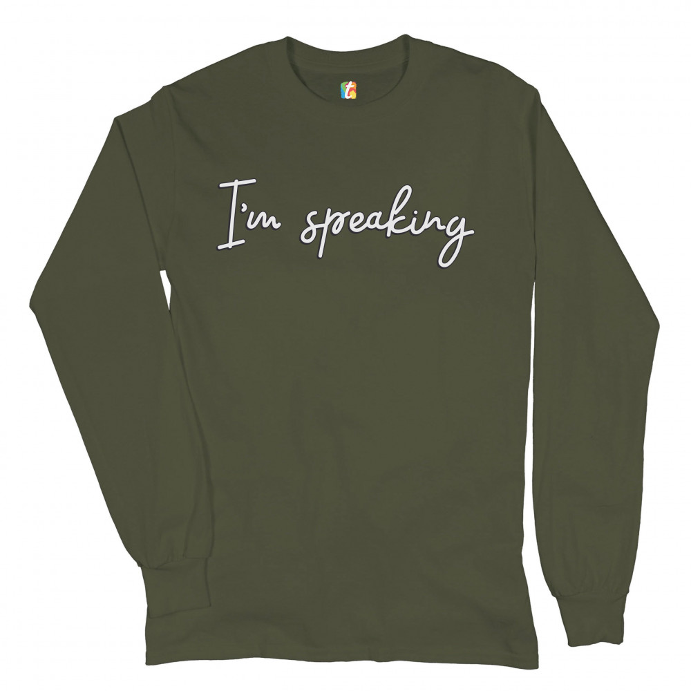 I'M SPEAKING long sleeve t-shirt biden harris 2020 vice presidential debate military green