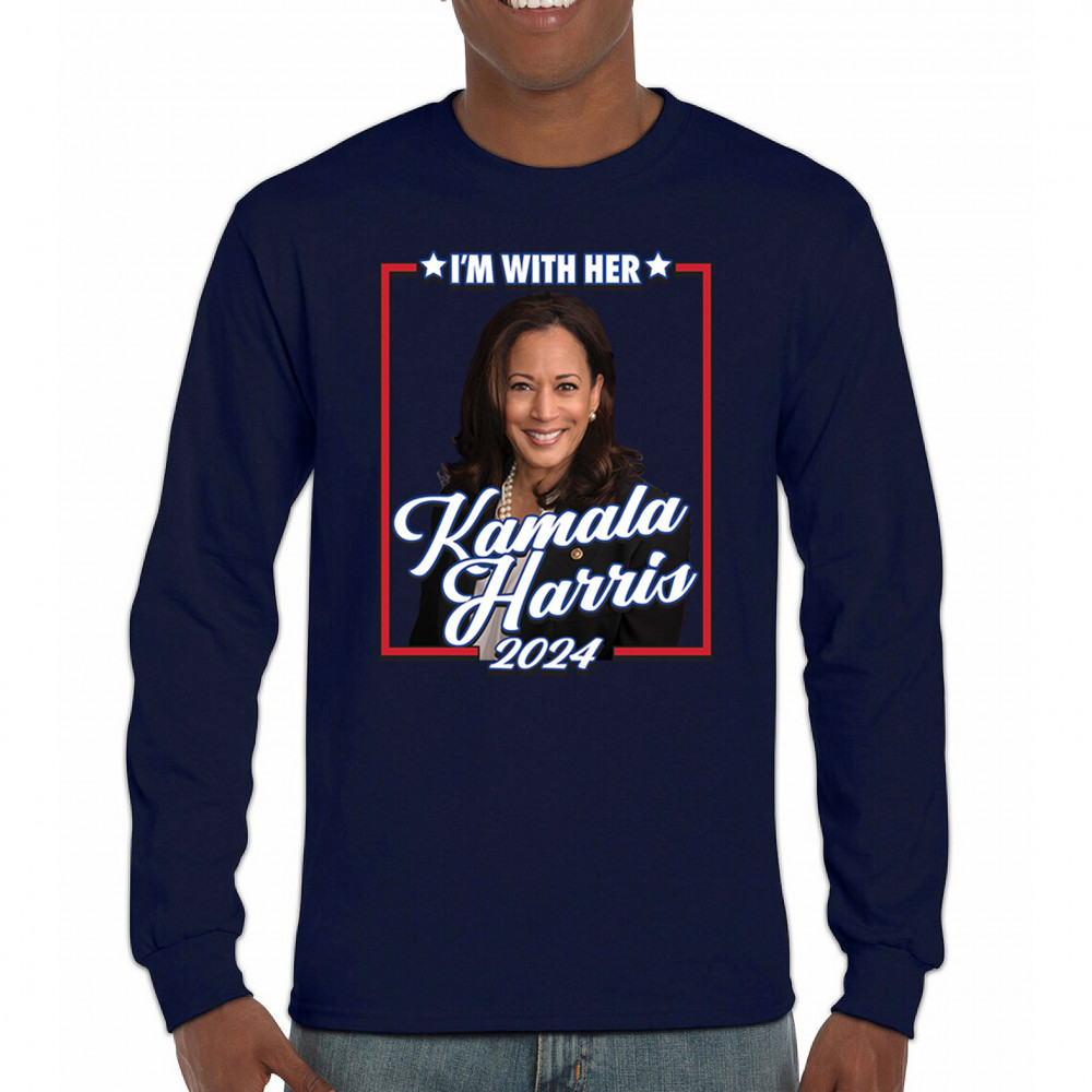 Stand with Kamala Harris in her 2024 presidential campaign with this vibrant design. Highlighting her commitment to progressive causes, this design is perfect for supporters of LGBTQ+ rights, women's rights, and social justice. Featuring the iconic "I'm With Her" slogan, it's a bold statement for anyone who believes in a brighter future. Wear it to rallies, events, or any day to show your support for Kamala Harris and her vision for America. A great addition to any supporter’s collection!