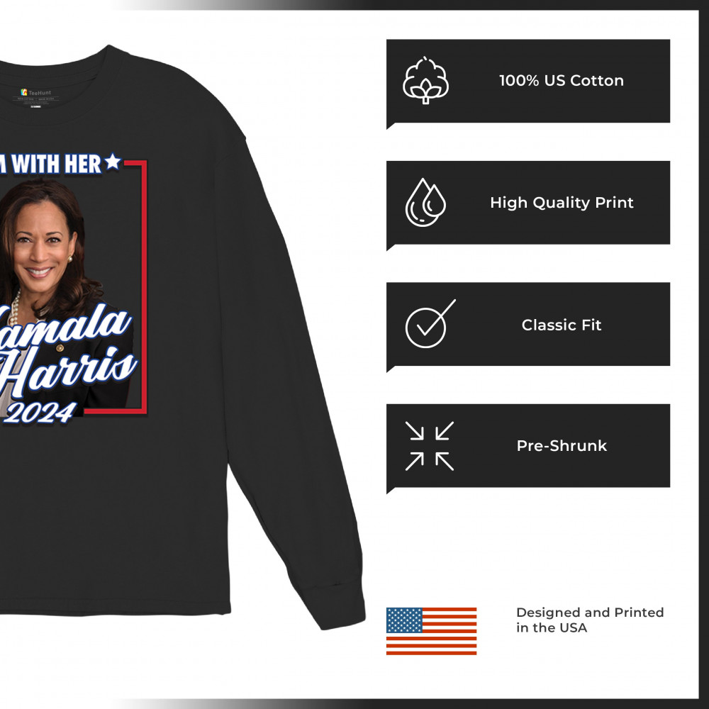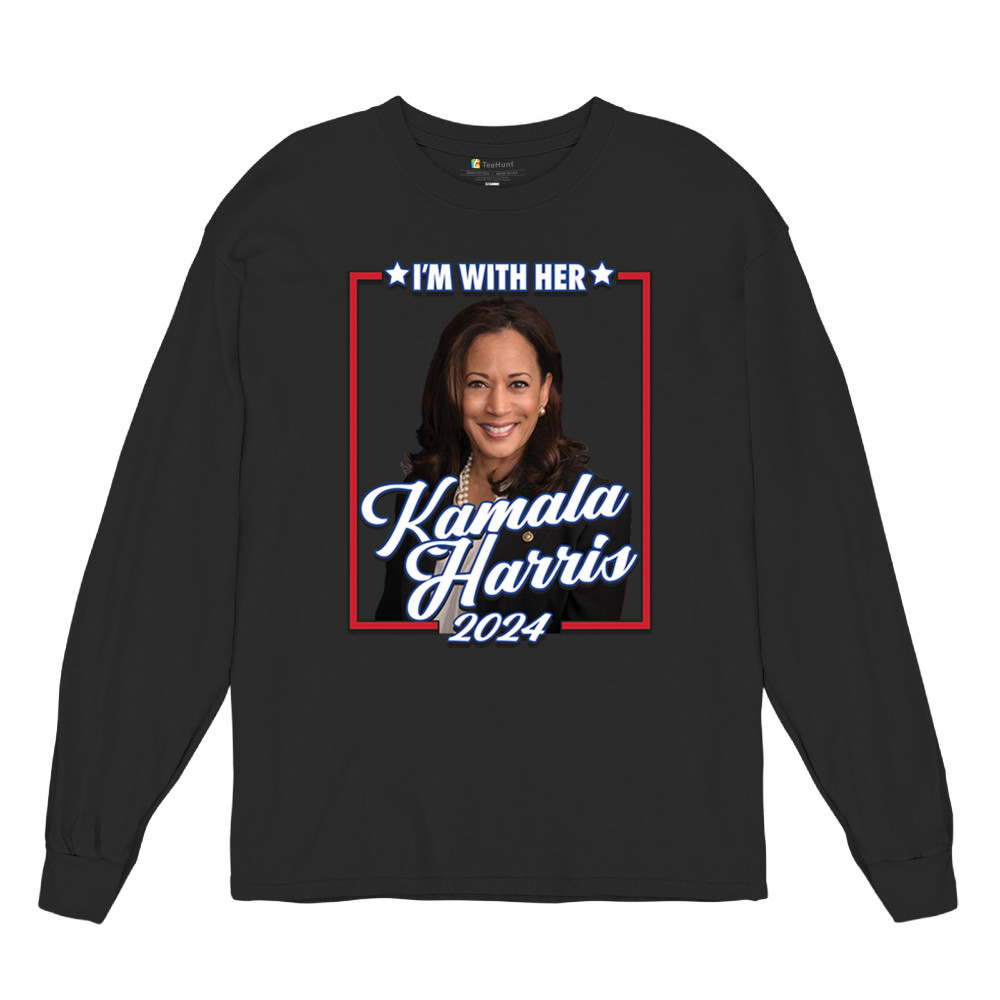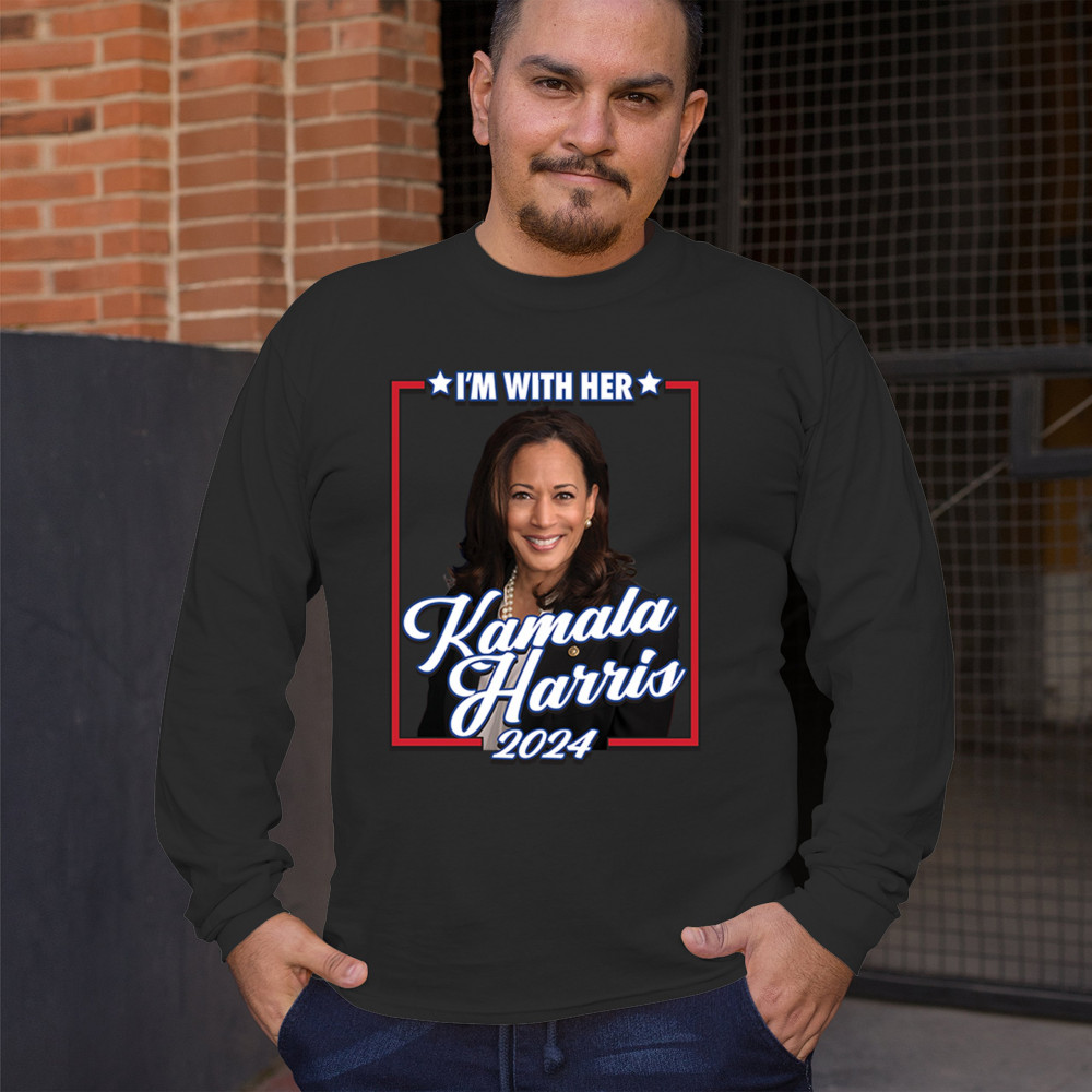 Stand with Kamala Harris in her 2024 presidential campaign with this vibrant design. Highlighting her commitment to progressive causes, this design is perfect for supporters of LGBTQ+ rights, women's rights, and social justice. Featuring the iconic "I'm With Her" slogan, it's a bold statement for anyone who believes in a brighter future. Wear it to rallies, events, or any day to show your support for Kamala Harris and her vision for America. A great addition to any supporter’s collection!
