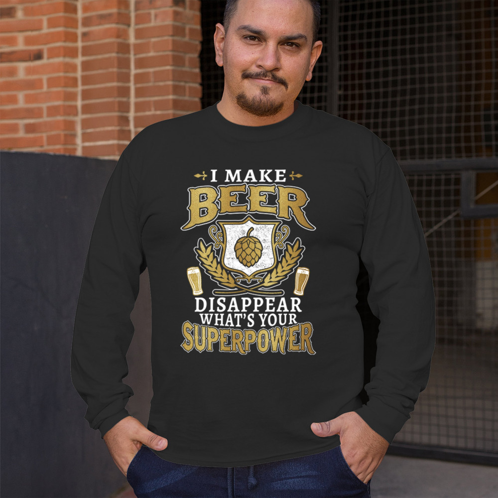 Celebrate your love for beer and humor with our "I Make Beer Disappear, What's Your Superpower?" design. Perfect for casual outings, beer festivals, and social gatherings, this witty design is ideal for beer enthusiasts and those who enjoy showcasing their unique superpowers. It also makes a fantastic gift for friends and family who appreciate beer-themed humor. Add this fun and playful design to your collection and let everyone know about your impressive beer-disappearing skills!