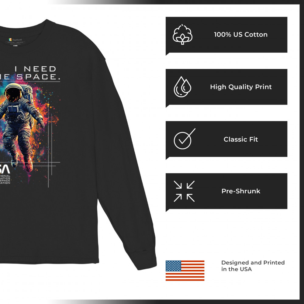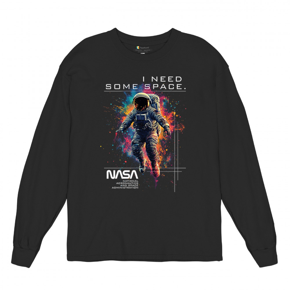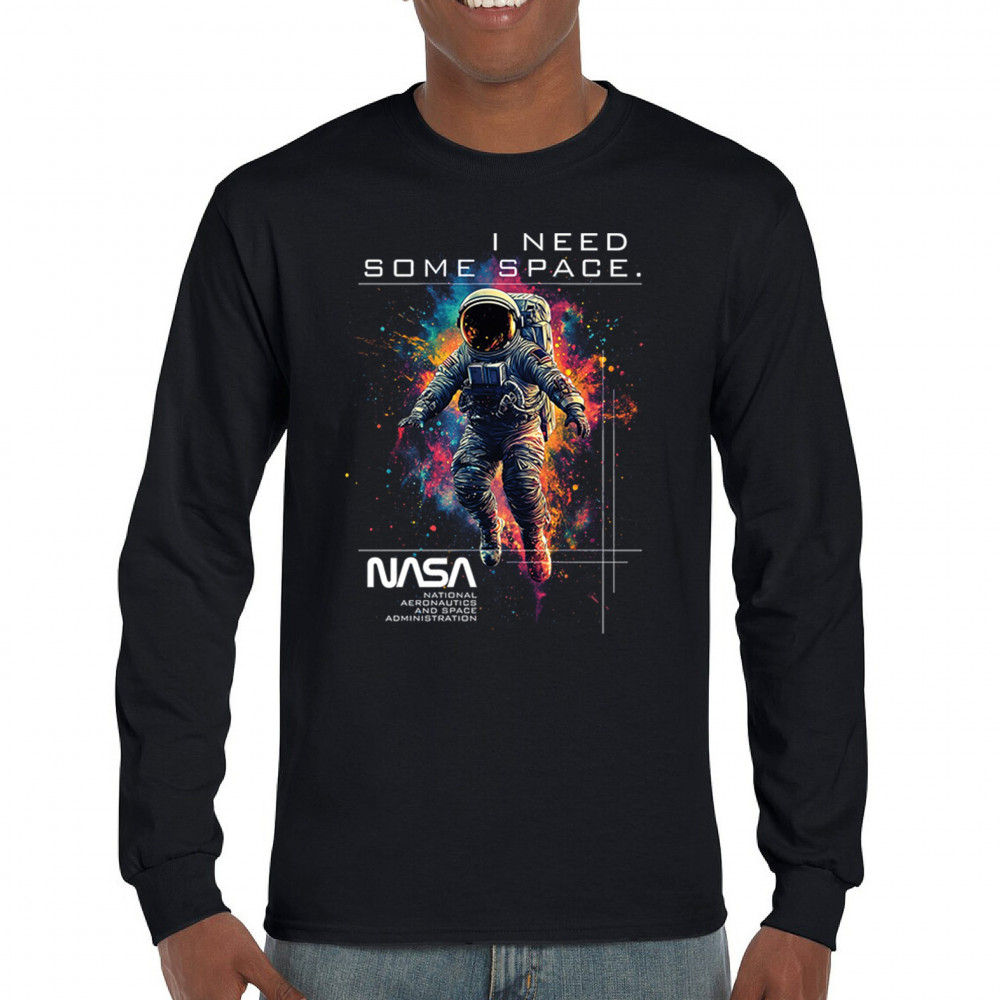 I NEED SOME SPACE NASA long sleeve t-shirt universe astronaut paint splatter black
