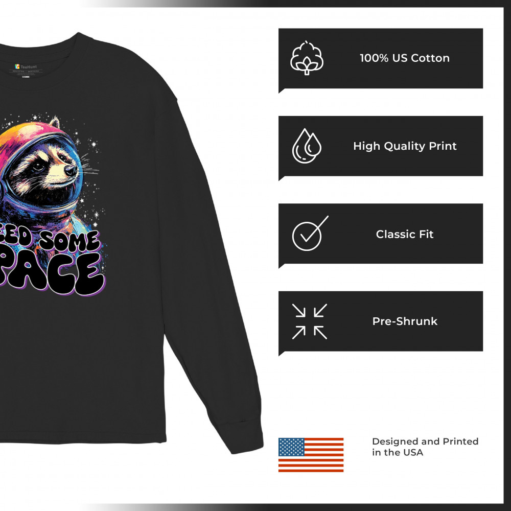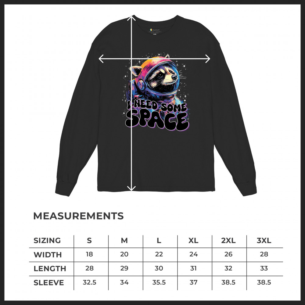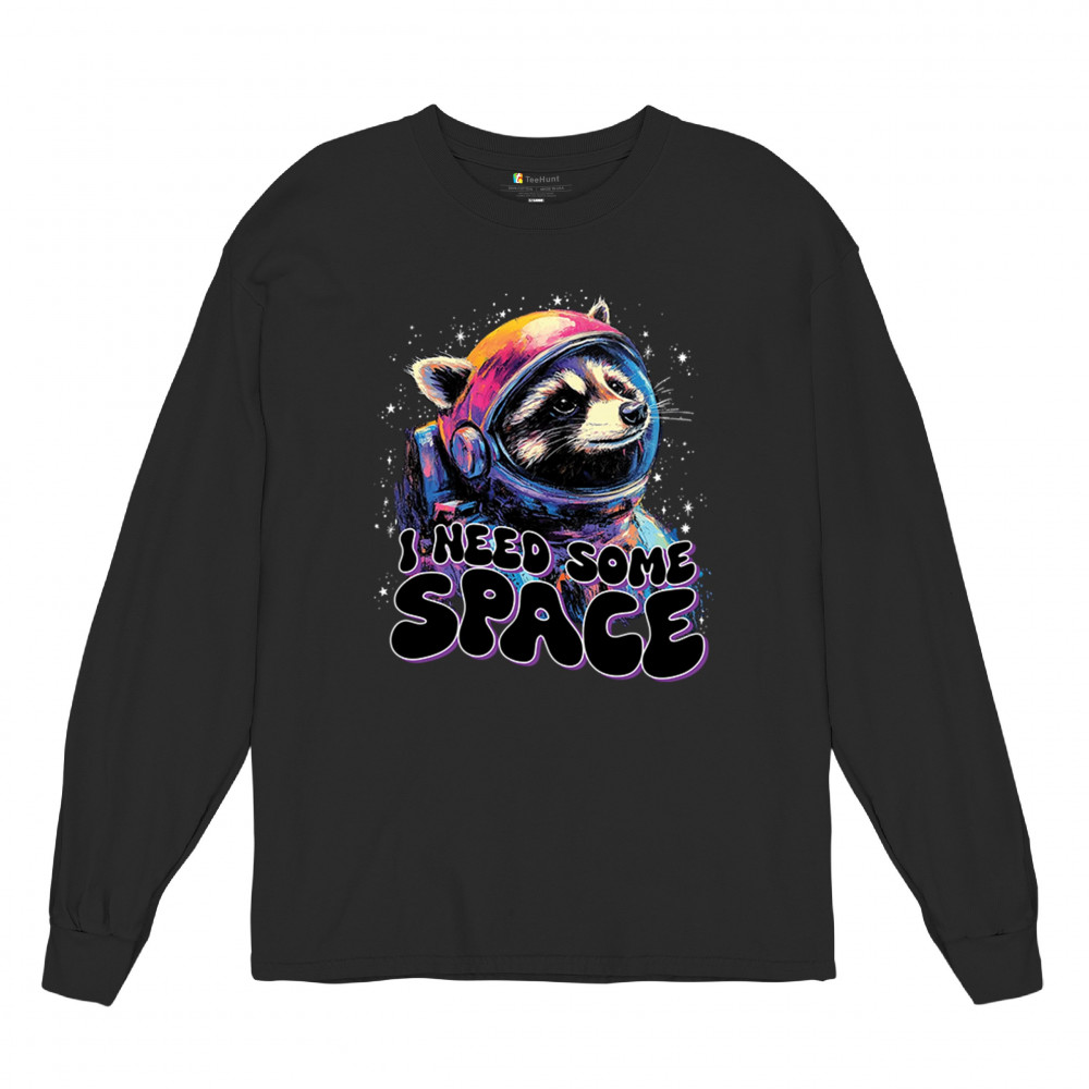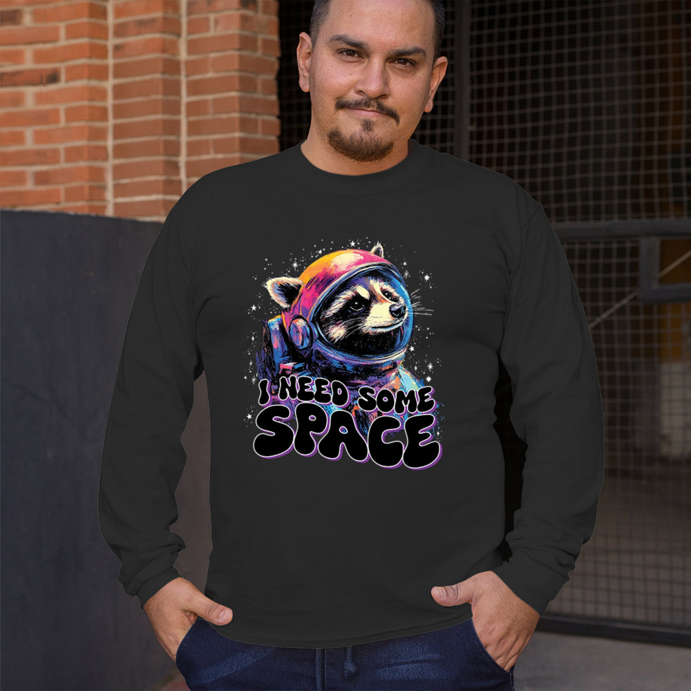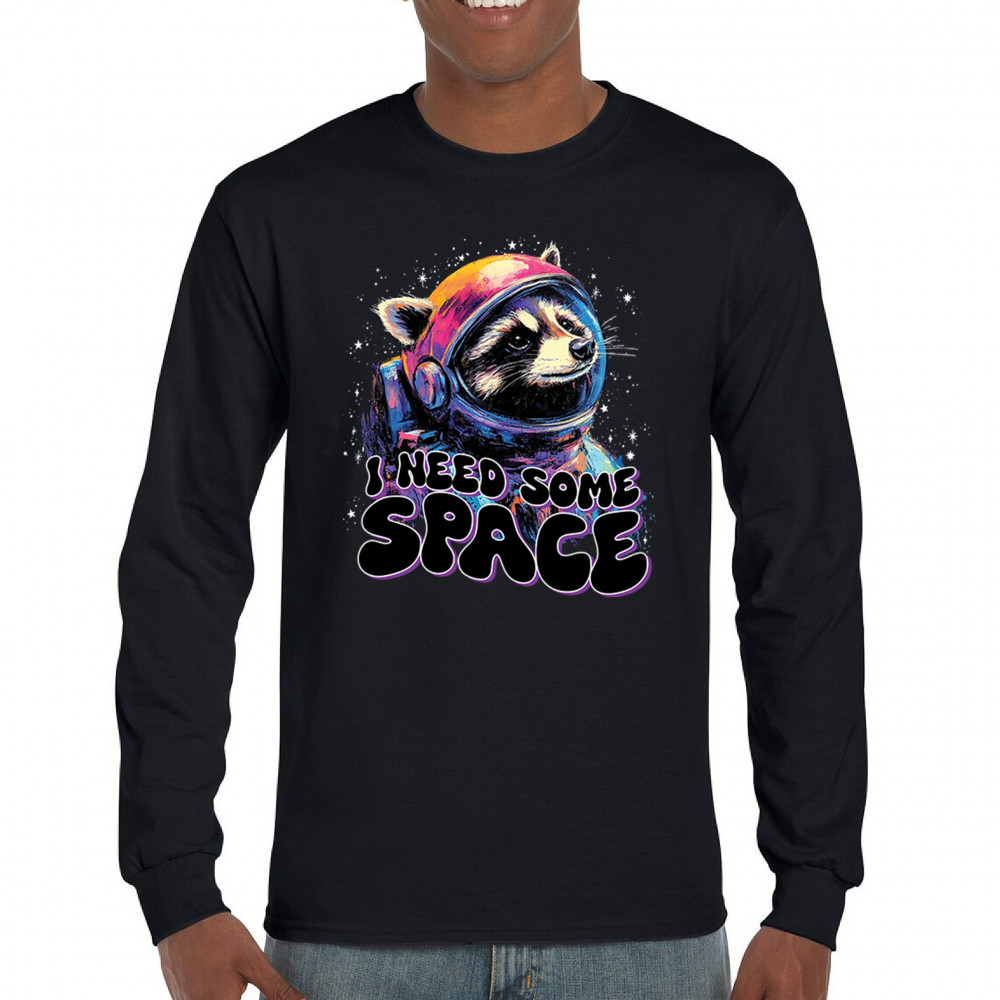 I NEED SOME SPACE RACOON long sleeve t-shirt funny cute astronaut cosmic pet black