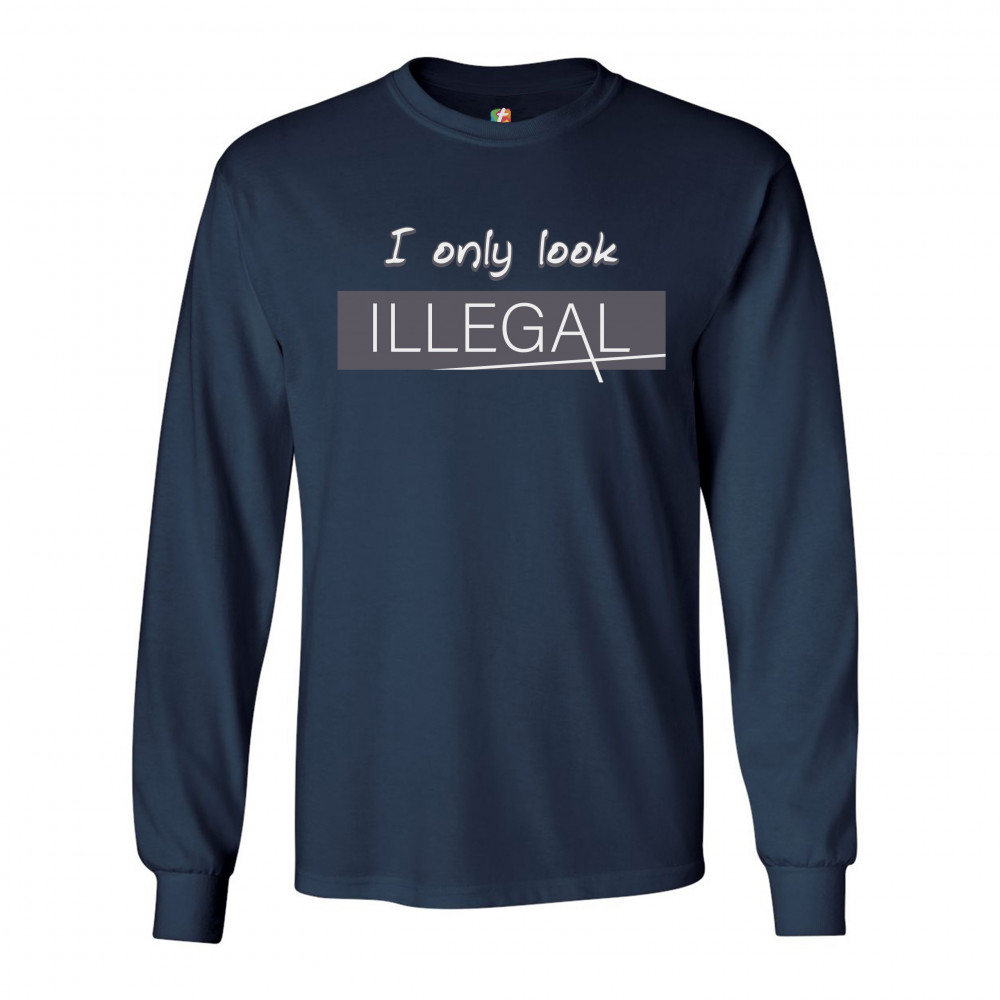 I ONLY LOOK ILLEGAL long sleeve t-shirt stop racism pro immigration funny navy blue