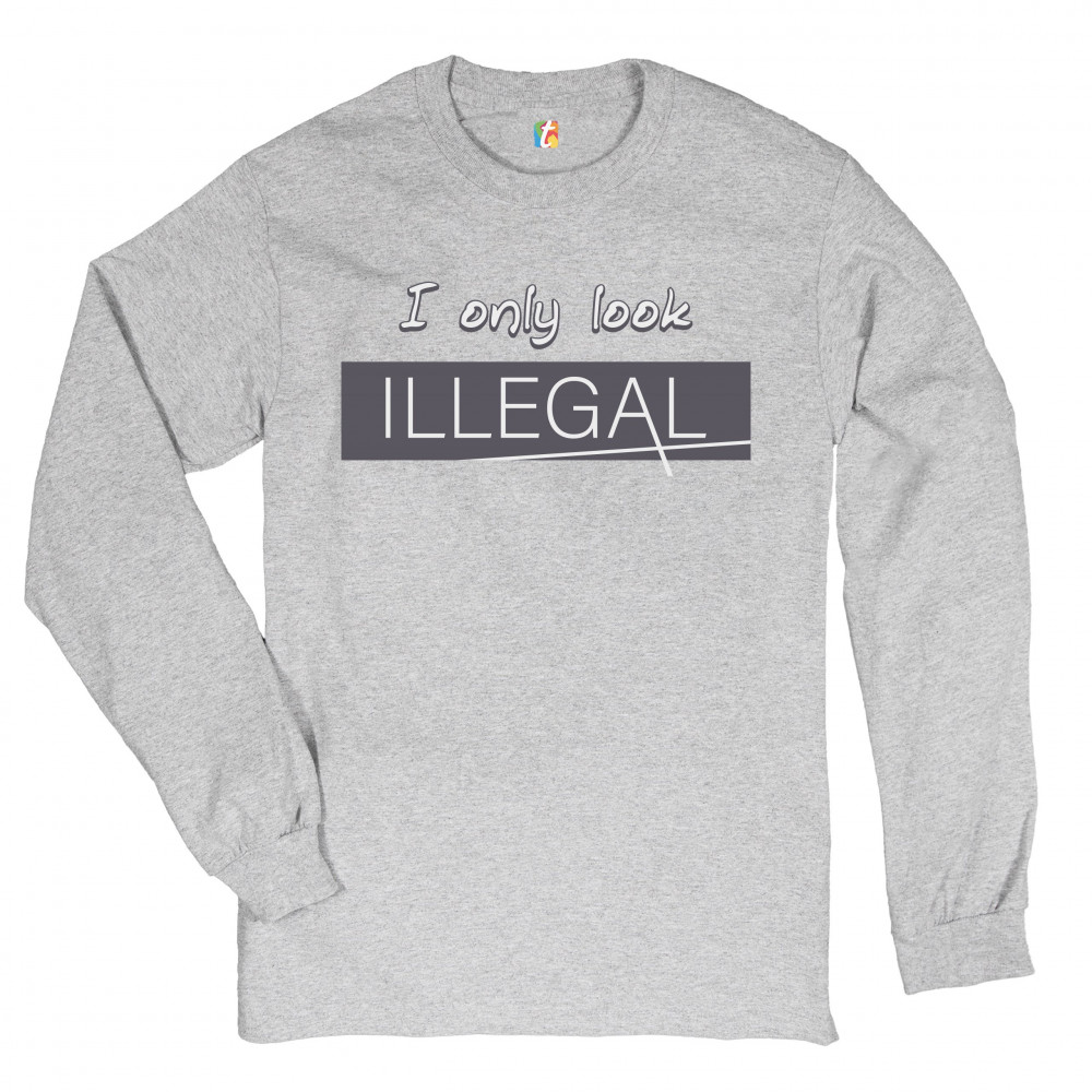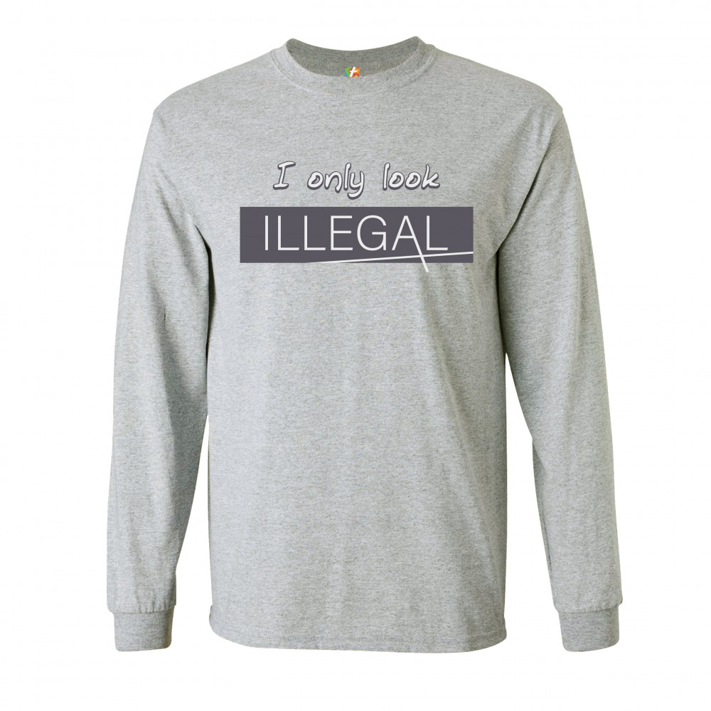 I ONLY LOOK ILLEGAL long sleeve t-shirt stop racism pro immigration funny gray