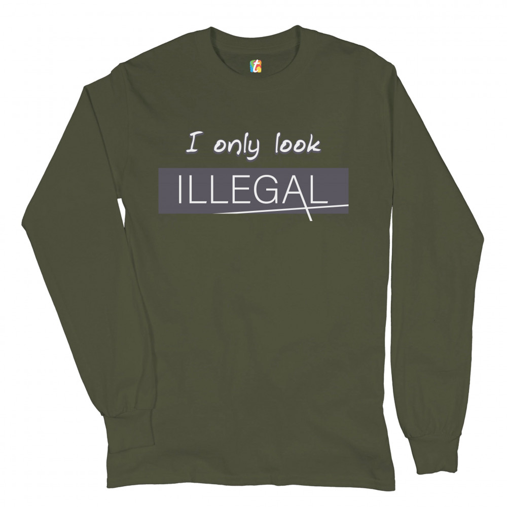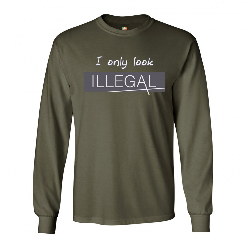 I ONLY LOOK ILLEGAL long sleeve t-shirt stop racism pro immigration funny military green