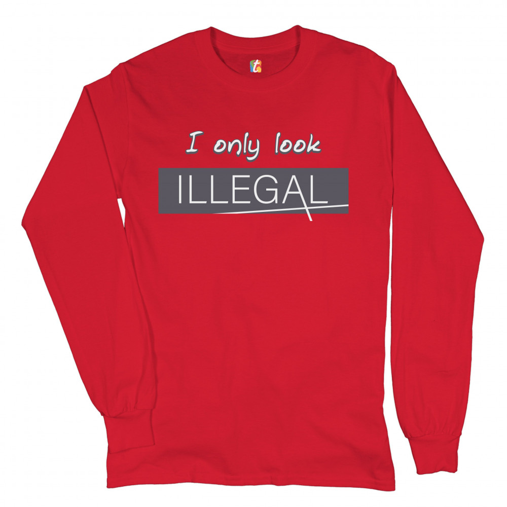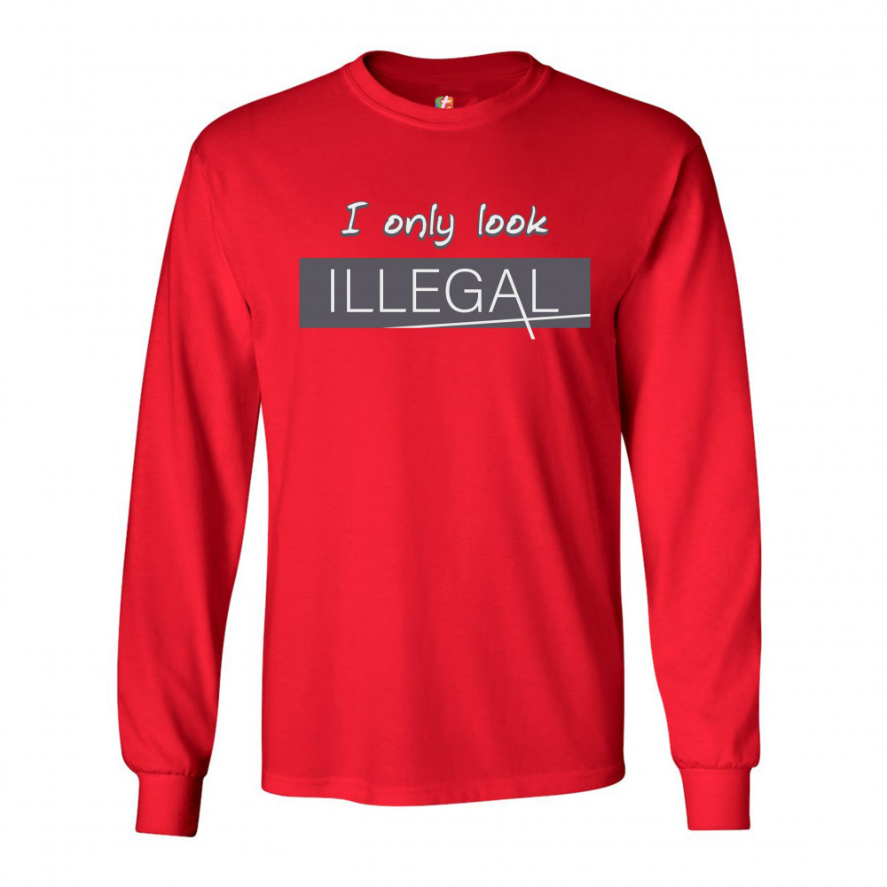 I ONLY LOOK ILLEGAL long sleeve t-shirt stop racism pro immigration funny red