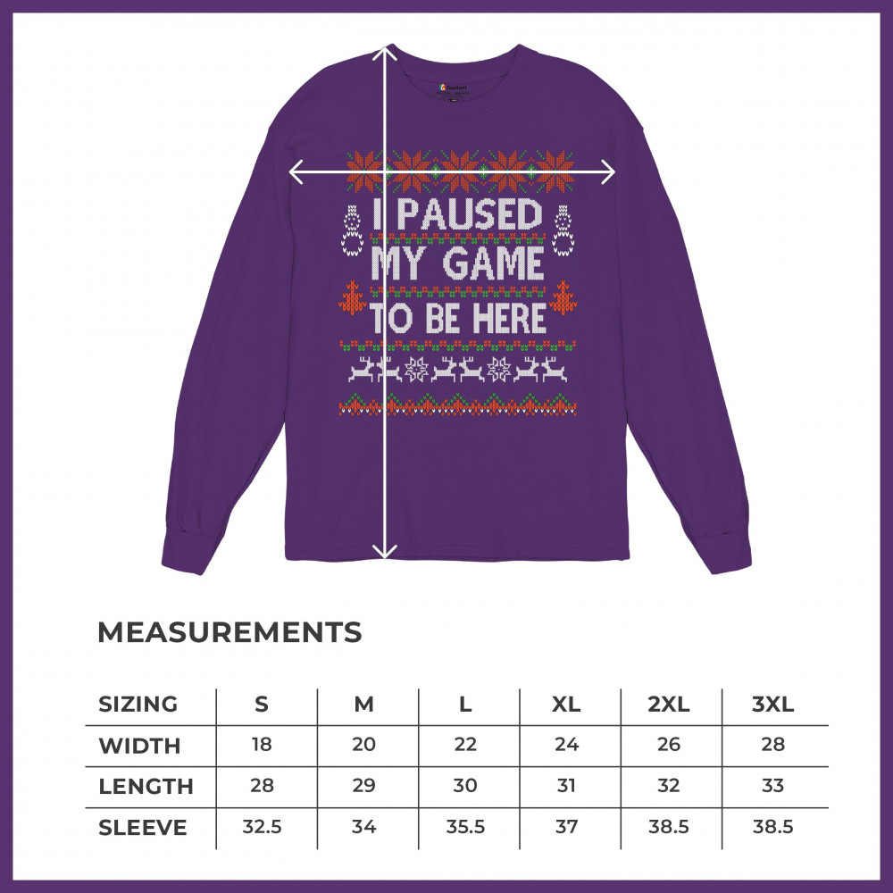 I PAUSED MY GAME TO BE HERE UGLY SWEATER THEME long sleeve t-shirt christmas purple